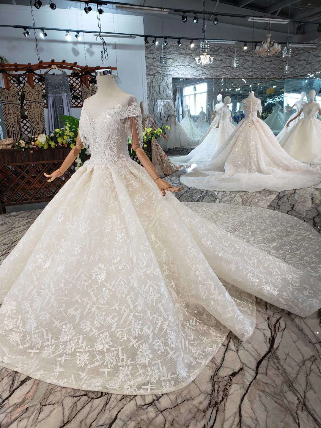 Special Offer فساتين زفاف فاخرة أنيقة من الدانتيل باللون الأبيض الشامبانيا لعام 2019 ، فستان زفاف الأميرة ، فستان الزفاف ، Vestido De Noiva Discount 20% Today!