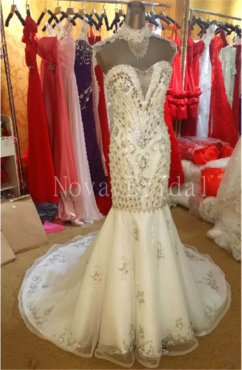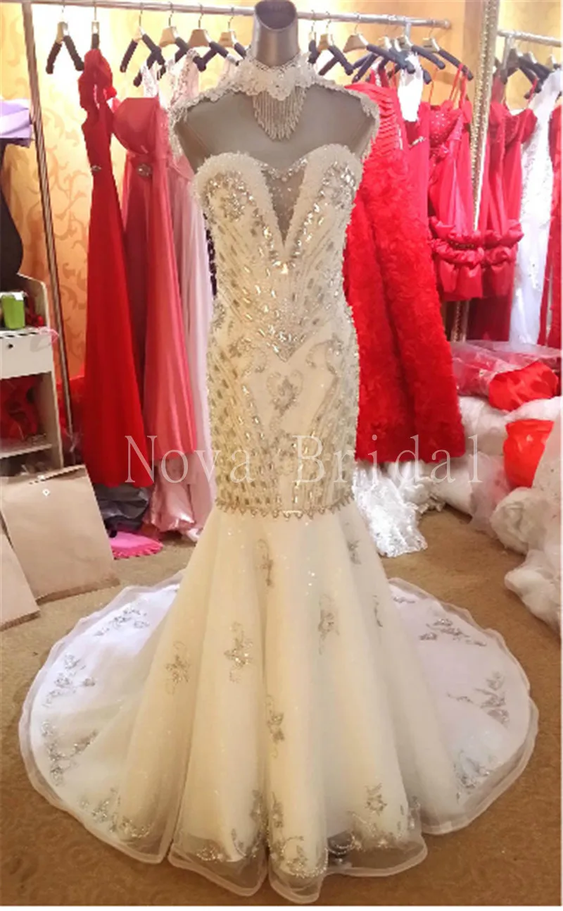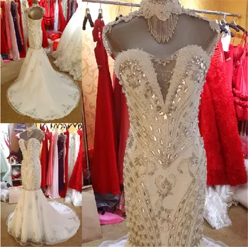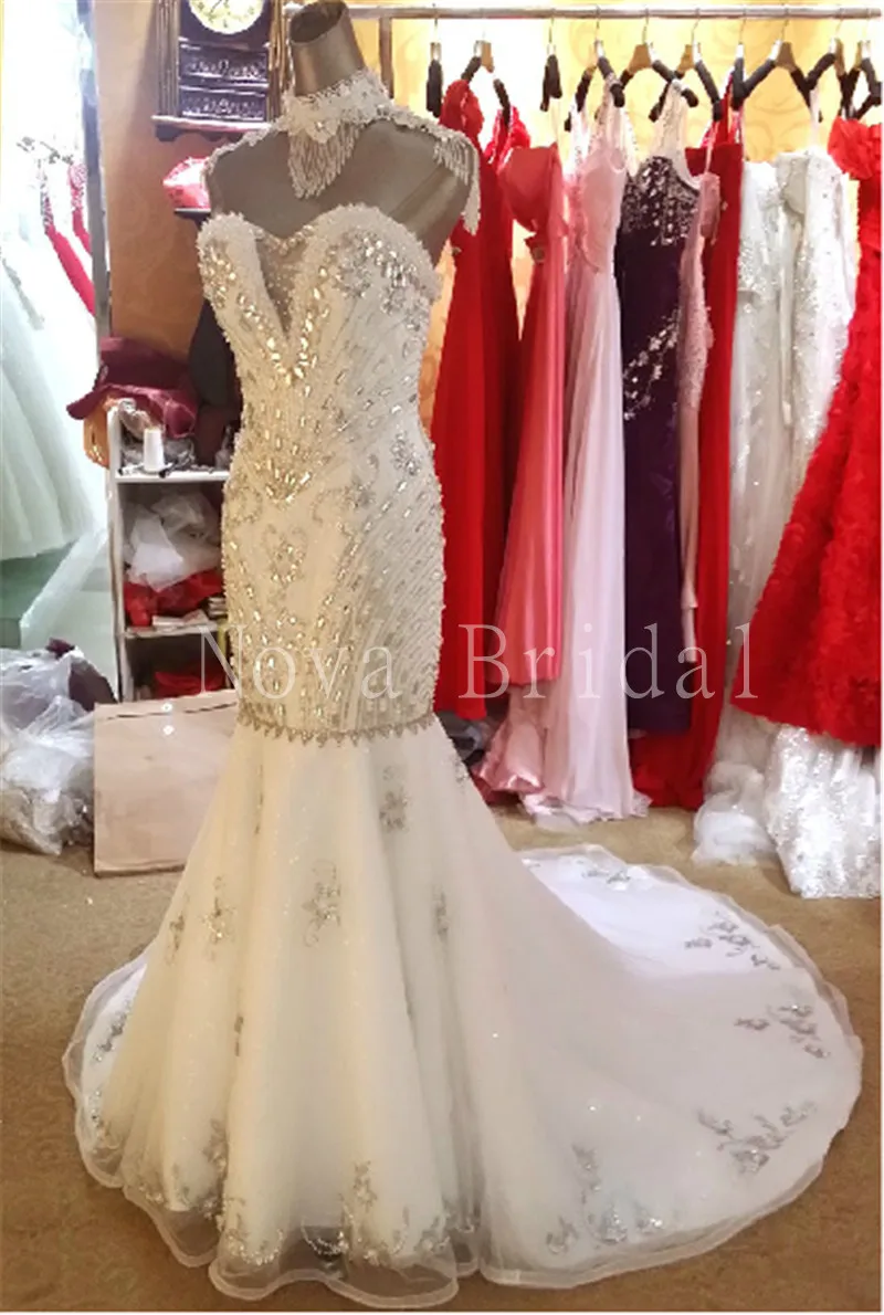 Special Offer فساتين زفاف مثيرة بتصميم حورية البحر لعام 2019 فاخرة مرصعة بالكريستال الثقيل بدون أكمام ورباط من الدانتيل فساتين زفاف Vestido De Noiva IZ207 Discount 0% Today!