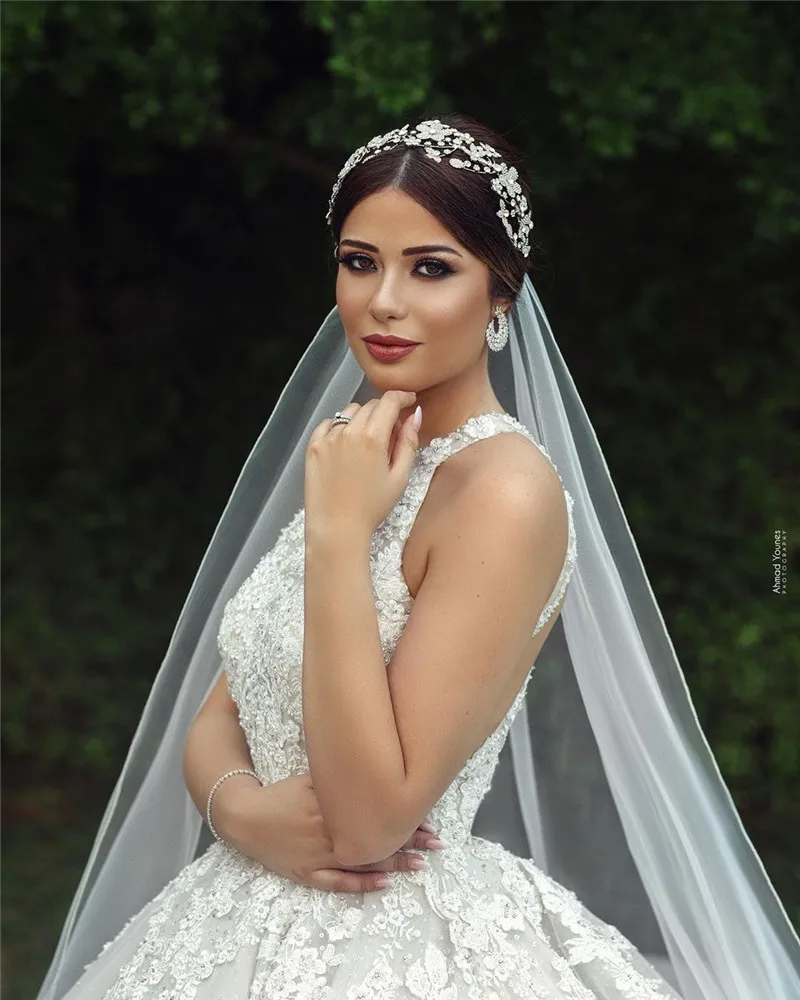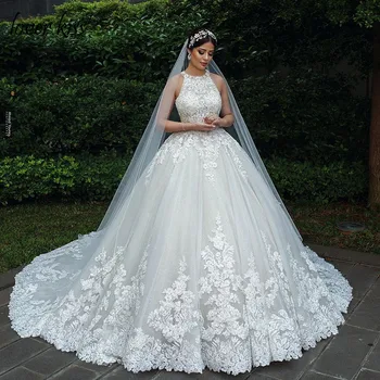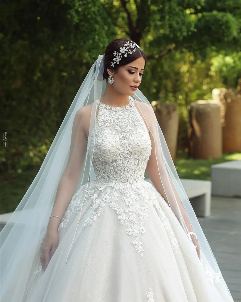 Special Offer عاشق قبلة الأميرة الكرة ثوب الزفاف في دبي عارية الذراعين مطرز الدانتيل الفاخرة زي العرائس 2020 فستان عروس رداء دي ماريج Discount 30% Today!