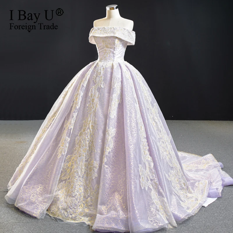 Special Offer فستان زفاف عربي فاخر بلون أرجواني 2020 طبقة من الدانتيل على الكتف زي العرائس رداء مارياج فيستدو دي نويفا موديستو Discount 6% Today!