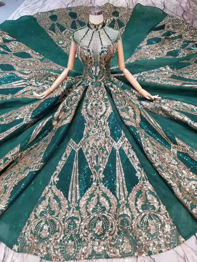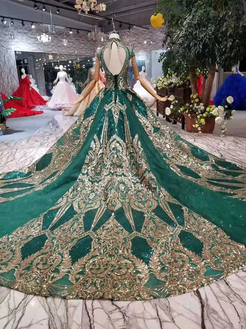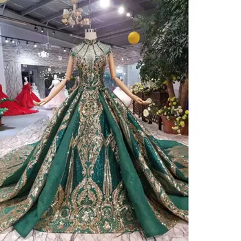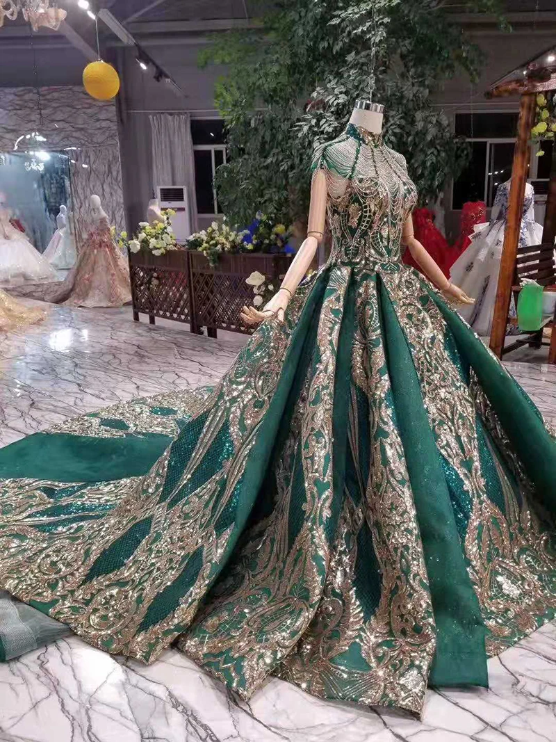 Special Offer BGW فساتين سهرة فاخرة خضراء السيدات عالية الرقبة قبعة الأكمام الكريستال فستان الحفلات مع الدانتيل الذهبي نمط دبي صور حقيقية Discount 56% Today!