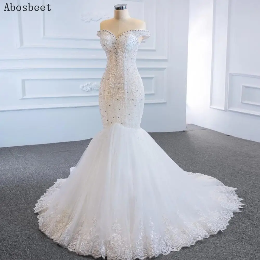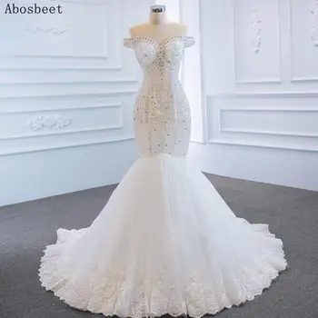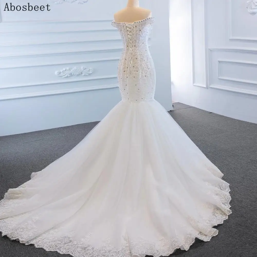 Special Offer DD JYOY مثير الوهم الجسم حورية البحر ثوب زفاف 2020 انظر من خلال ثوب زفاف الخرز الفاخرة قبالة الكتف فستان الزفاف قطار صغير Discount 35% Today!