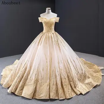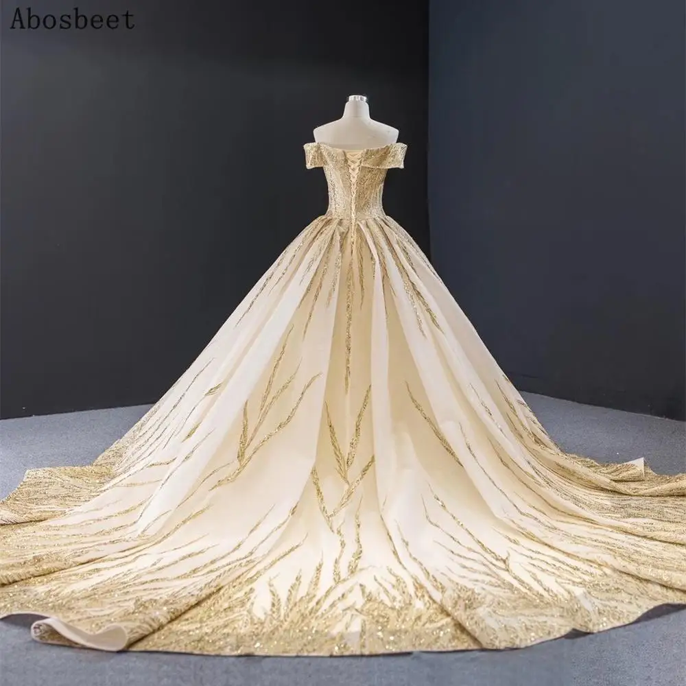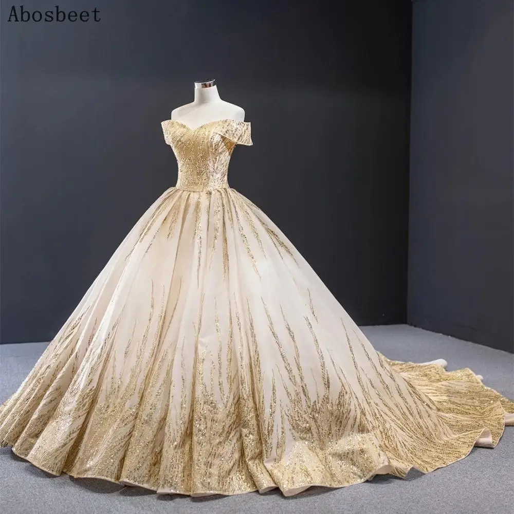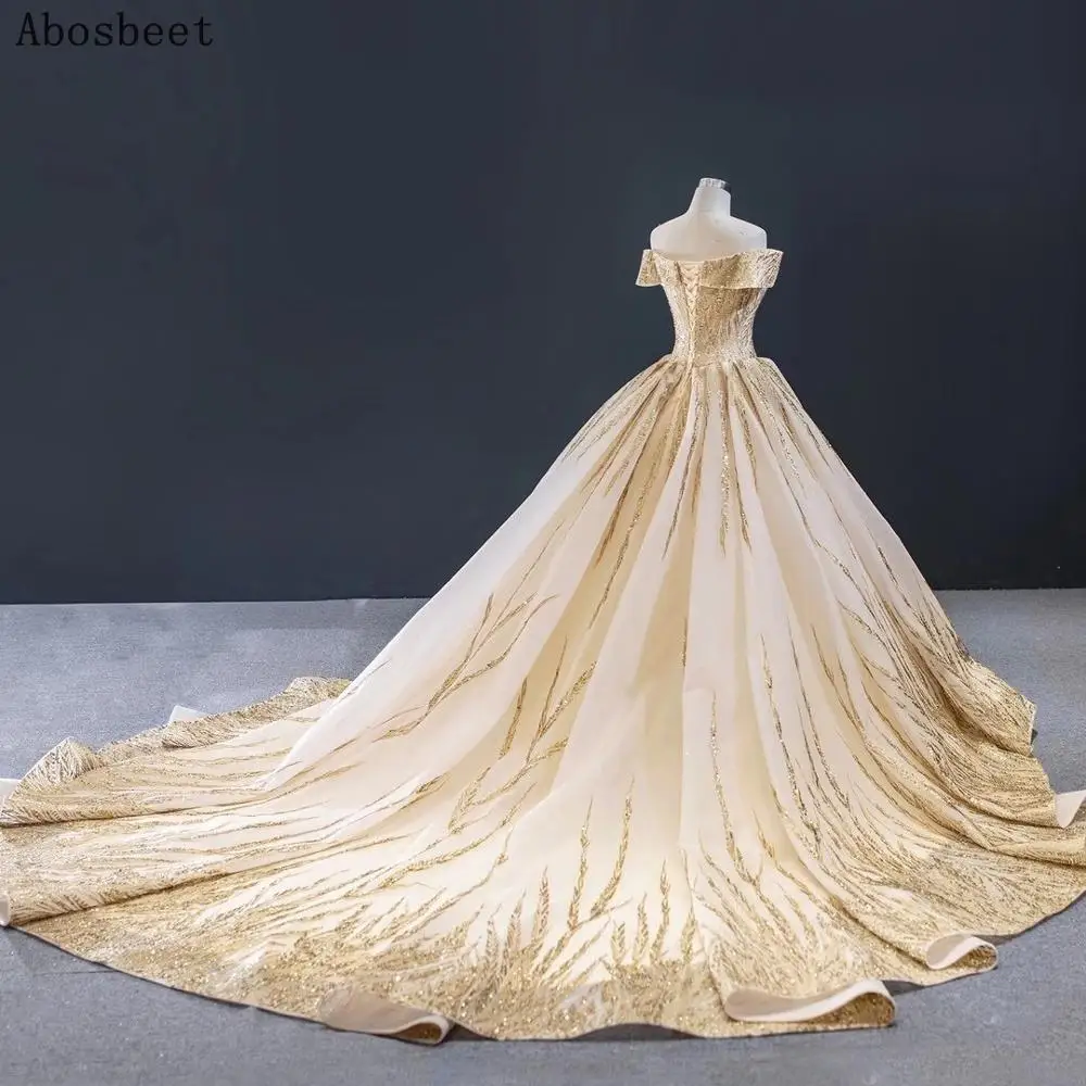 Special Offer DD JYOY فاخر الذهب الكرة ثوب سهرة فستان طويل قطار براق الدانتيل الترتر قبالة الكتف فستان حفلات ملابس نسائية أنيقة Discount 30% Today!