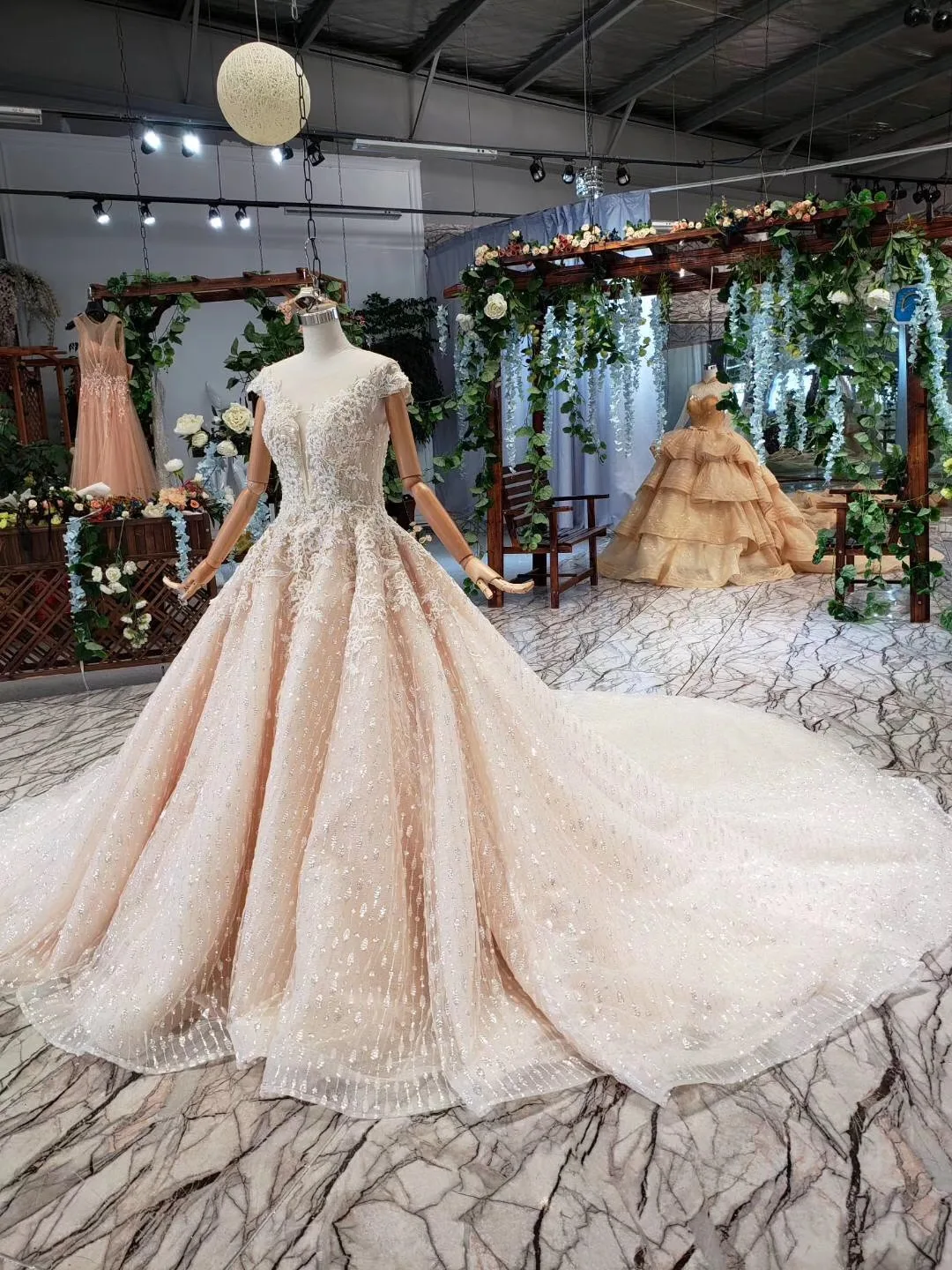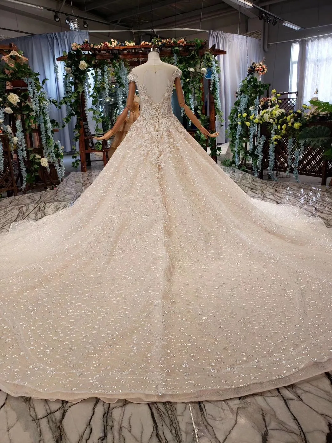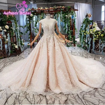 Special Offer Gelinlik Vestido De Noche كامل الديكور الفاخرة تألق الشمبانيا الدانتيل بلينغ بلينغ فستان الزفاف العمل الحقيقي Novias الموضة Discount 29% Today!
