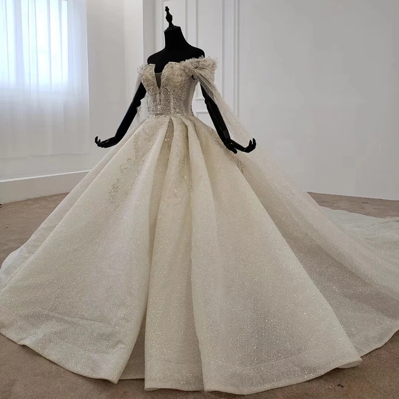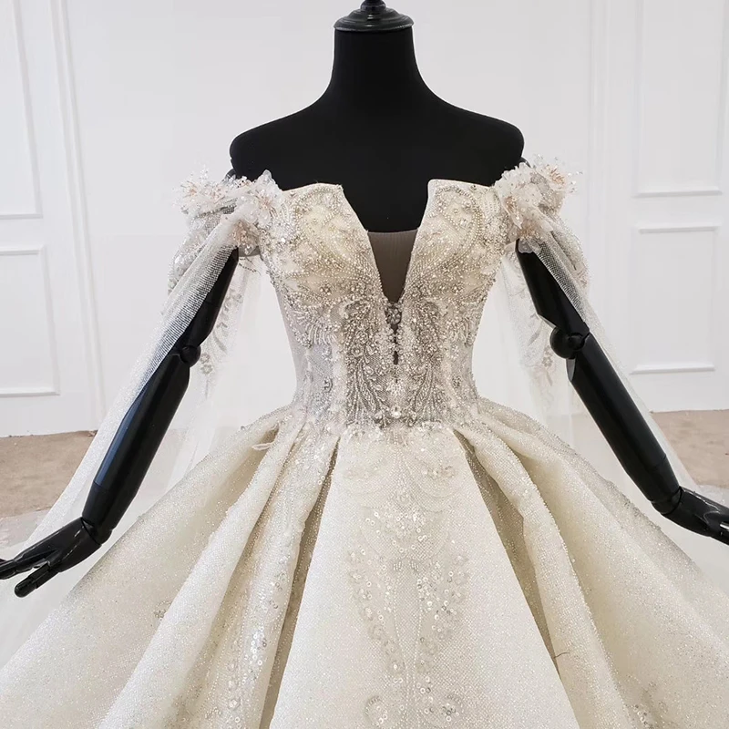 Special Offer HTL1157 فساتين الزفاف الفاخرة الخامس الرقبة قصيرة الأكمام الديكور الترتر نمط الدانتيل يصل الكرة ثوب Discount 55% Today!