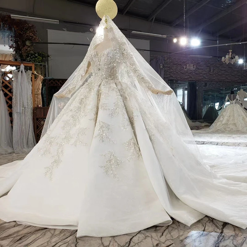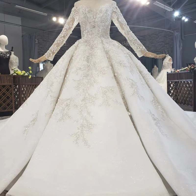 Special Offer HTL1639 فستان زفاف فاخر للغاية مطرز بالخرز كريستال كبير 2020 قطار كبير كم طويل رقبة V فستاين سهرة/فساتين الحفلات Discount 55% Today!