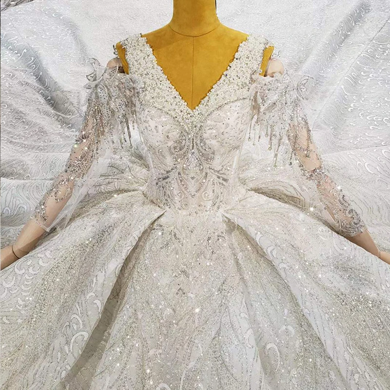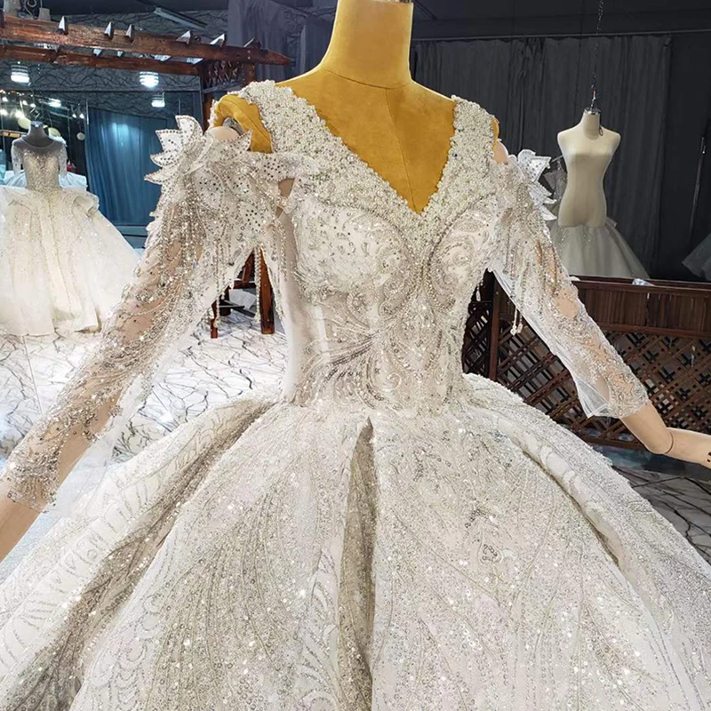 Special Offer HTL1995 فاخر مثير الخامس الرقبة كريستال الخرز الترتر فستان الزفاف 2021 للمرأة فستاين سهرة/فساتين الحفلات كم طويل Discount 55% Today!