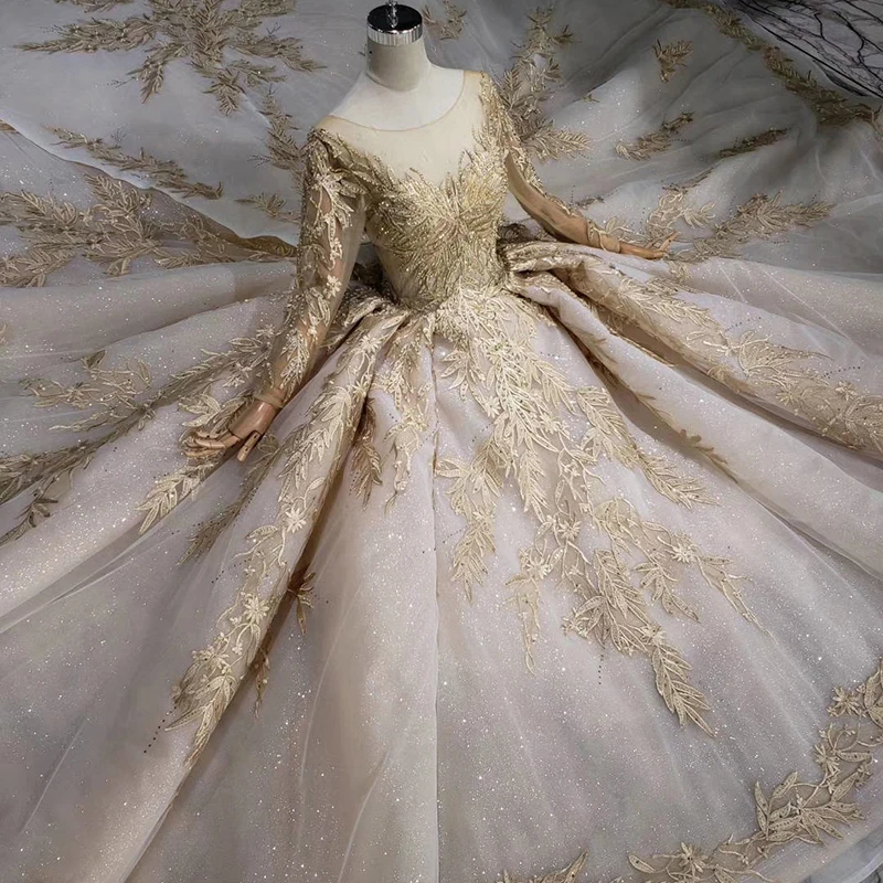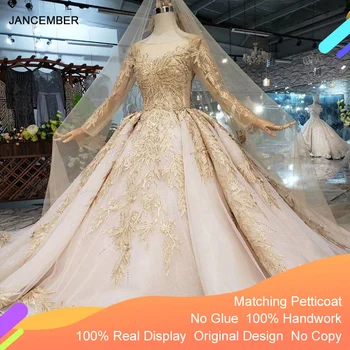 Special Offer LS11555 فستان زفاف فاخر مع طرحة زفاف بدون ظهر اليدوية الشمبانيا الذهبي الدانتيل فستان الزفاف ثوب زفاف مع قطار طويل Discount 50% Today!