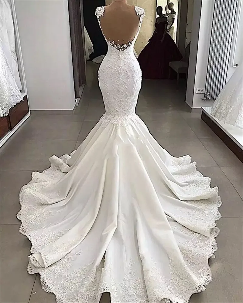 Special Offer حورية البحر الظهر تول الدانتيل الخرز كريستال مثير فساتين الزفاف الفاخرة ثوب زفاف الزفاف حجم مخصص LS35 Discount 24% Today!