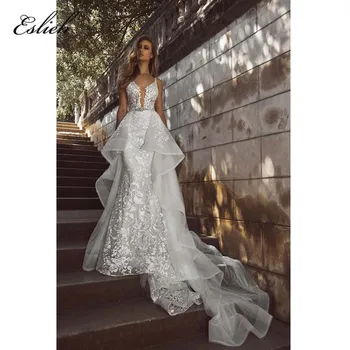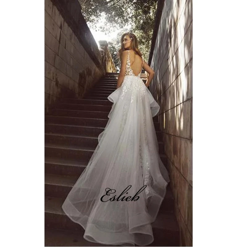 Special Offer أنيقة فستان الزفاف أكمام V الرقبة مثير تصميم انفصال قطار ثوب زفاف حزام مطرز عارية الذراعين فستان الزفاف 2019 HA027 Discount 0% Today!