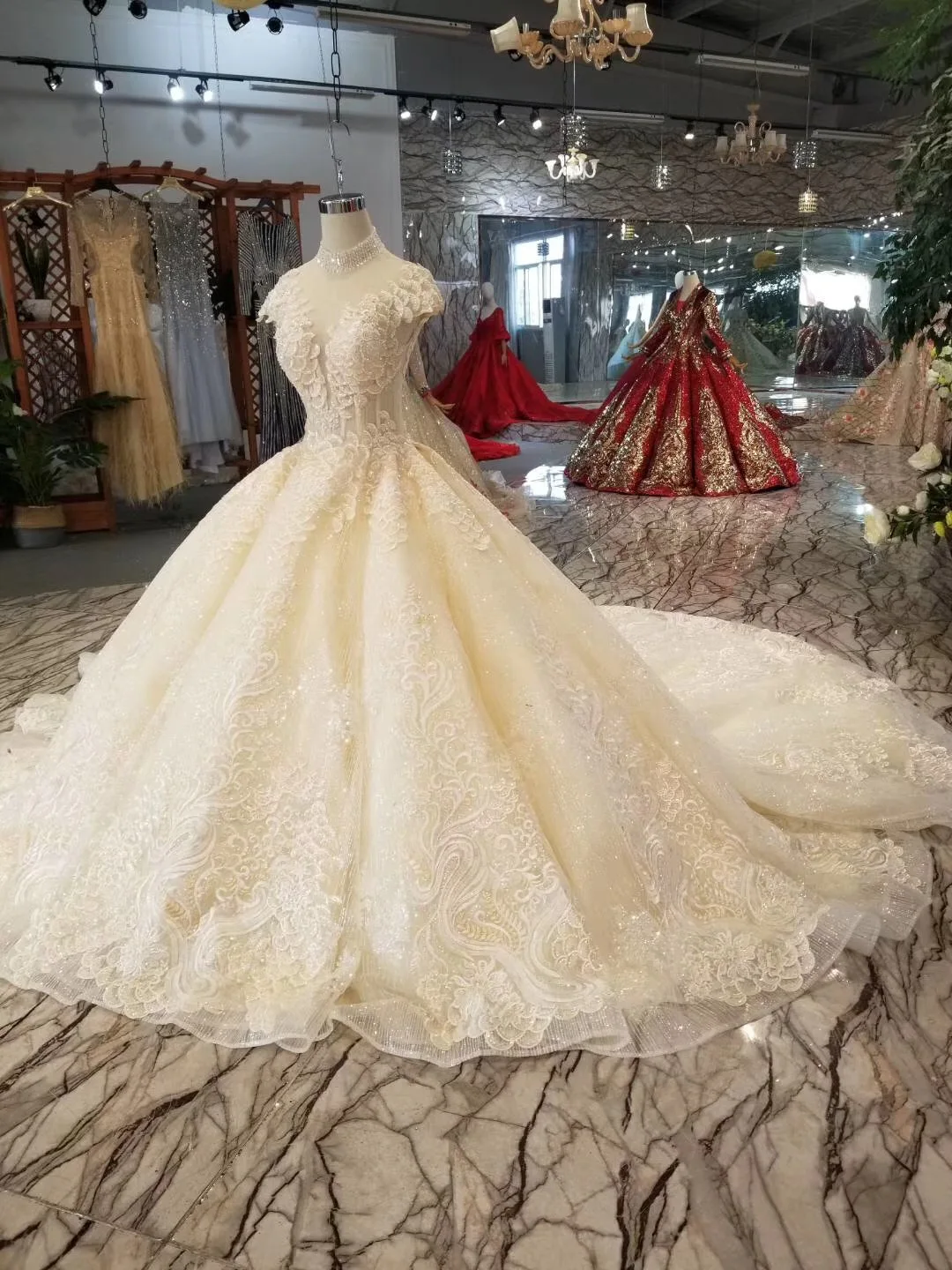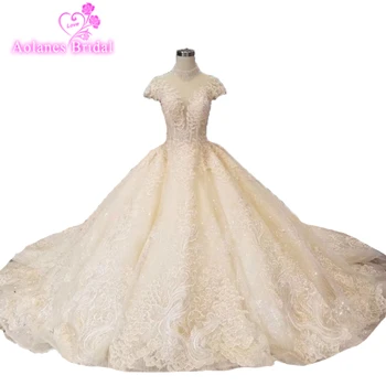 Special Offer فساتين زفاف فاخرة مرصعة بالكريستال ثوب حفلة مطرز بأكمام طويلة ورقبة عالية من الدانتيل Vestido De Noiva Princesa صور حقيقية عالية الجودة Discount 20% Today!
