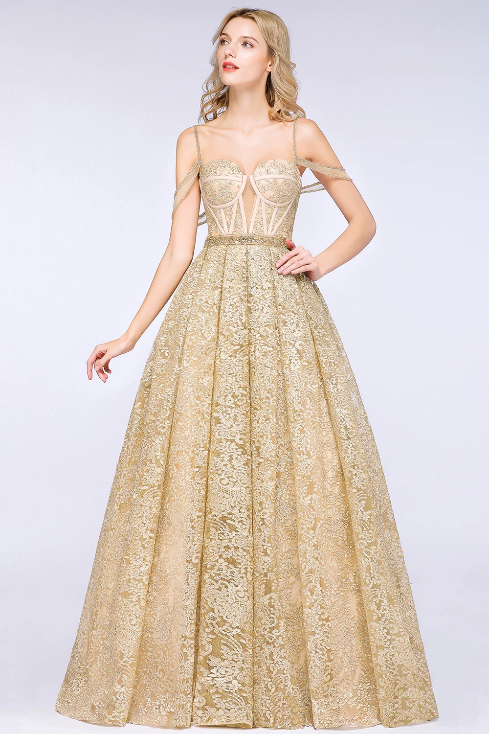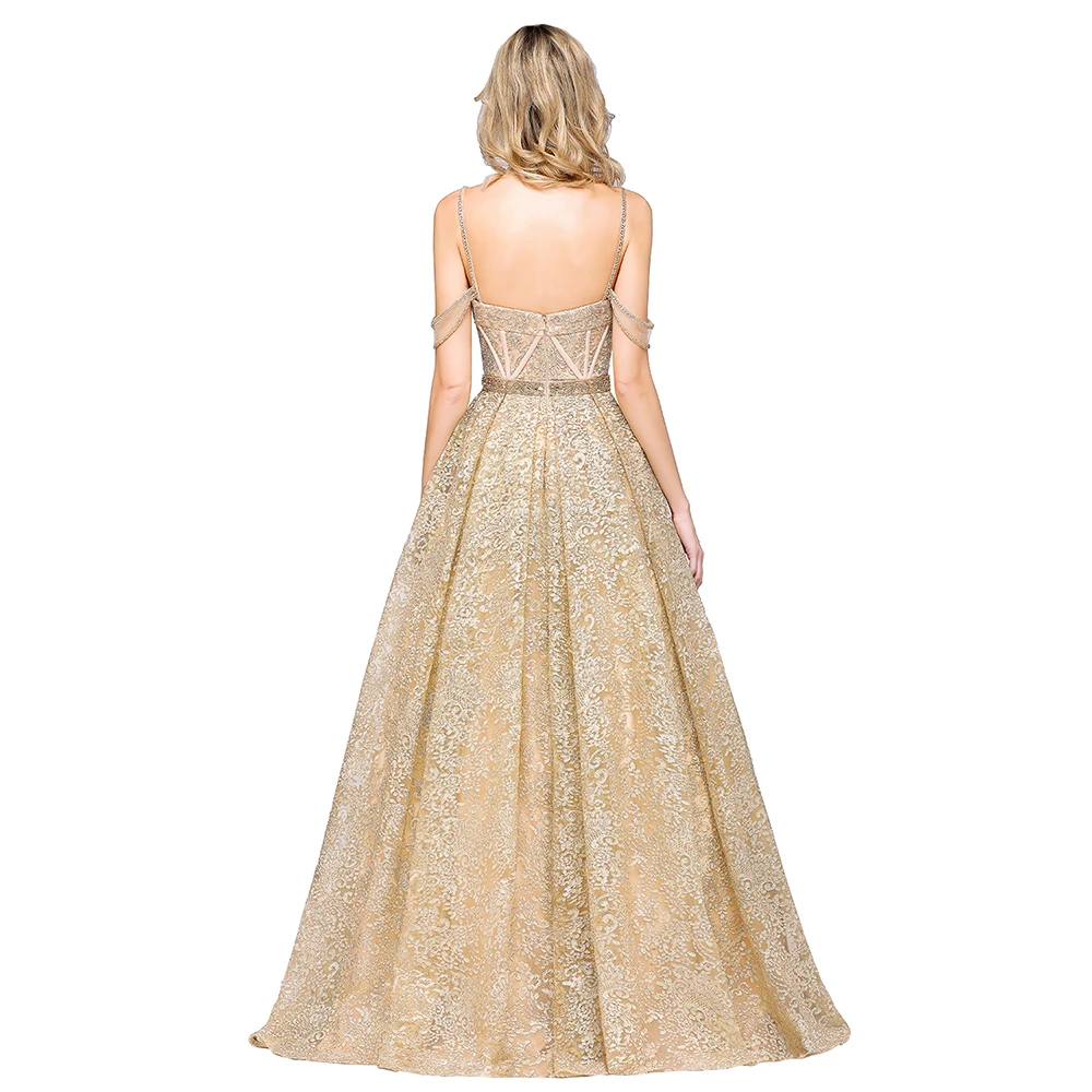 Special Offer Vestido دي Noiva فاخرة مخصصة الشمبانيا الدانتيل فستان الزفاف 2019 السباغيتي حزام الحبيب قبالة الكتف أثواب الزفاف Discount 30% Today!