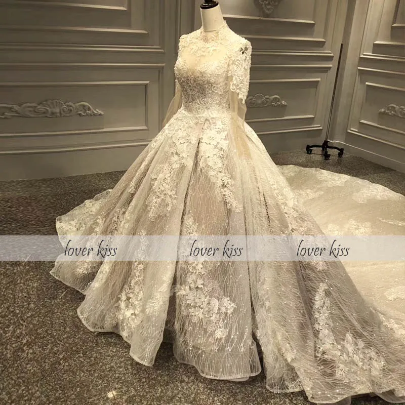 Special Offer عاشق قبلة Vestido دي Noiva رائع الدانتيل مطرز طويل الأكمام فستان الزفاف مع قطار فستان زفاف ل الزواج رداء دي خطاباتخطابهزوجات Discount 5% Today!