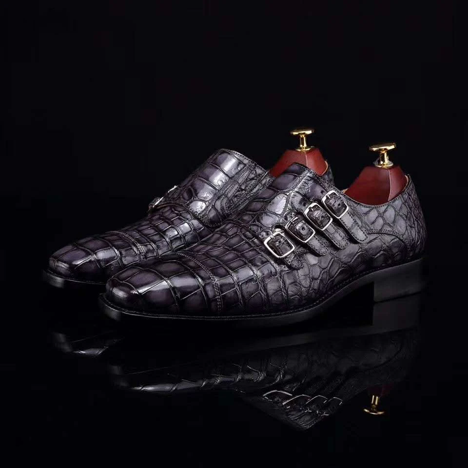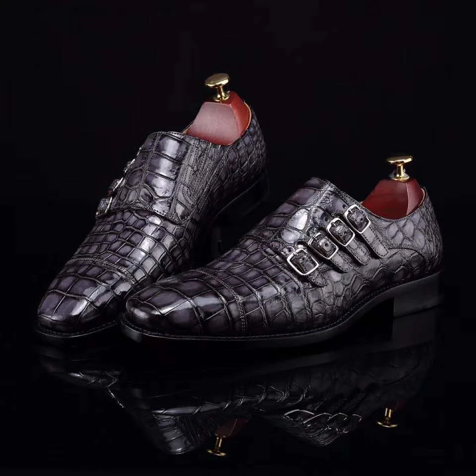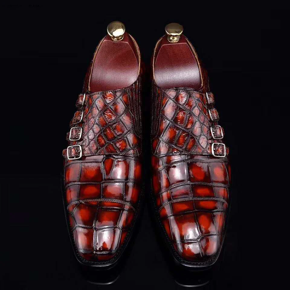 Special Offer نمط جديد أربعة صفوف من الابازيم الفاخرة جلد التمساح الراهب فستان بحزام الأحذية جوديير Welted حذاء رسمي Discount 30% Today!