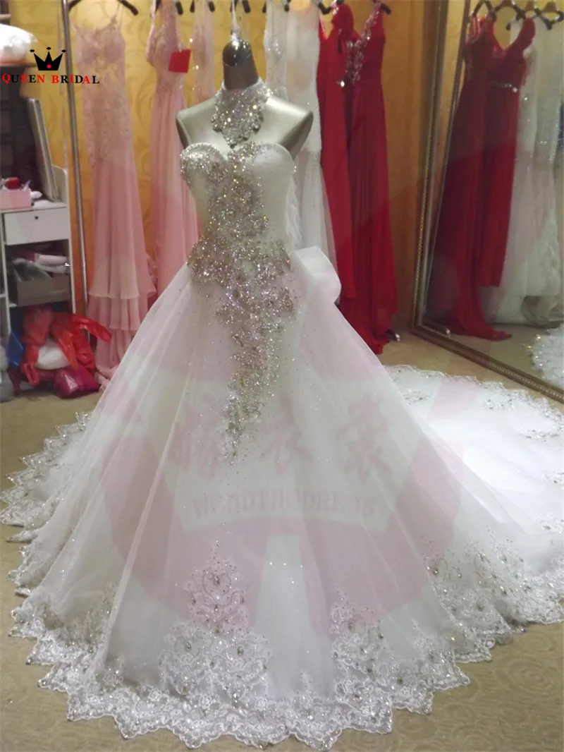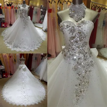 Special Offer مخصص الكرة بثوب الحبيب الرباط كريستال مطرز خمر فساتين الزفاف الفاخرة زي العرائس الحقيقي الصور XJ02 Discount 23% Today!