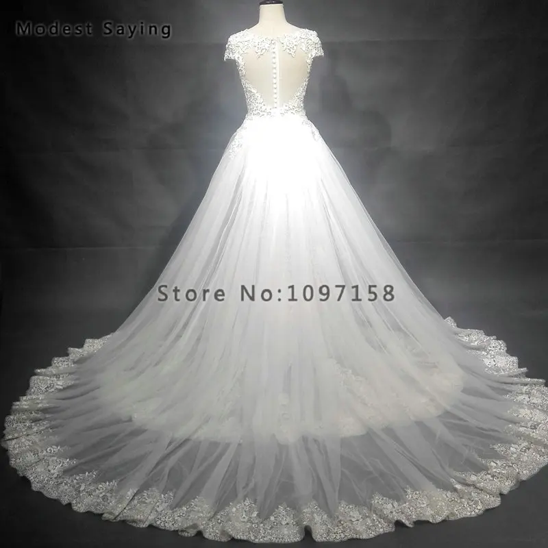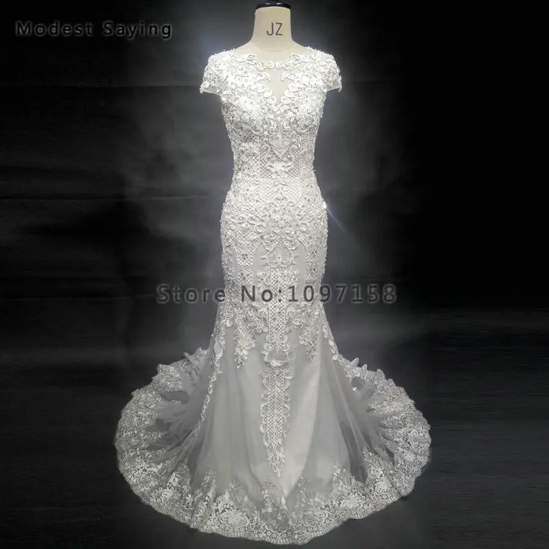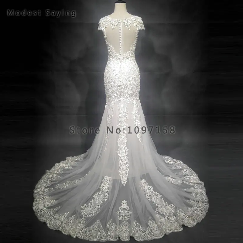 Special Offer فاخر شفاف العاج حورية البحر كم كاب سباركلي اللؤلؤ الدانتيل فستان الزفاف 2018 مع انفصال قطار زي العرائس Vestido De Noiva Discount 10% Today!