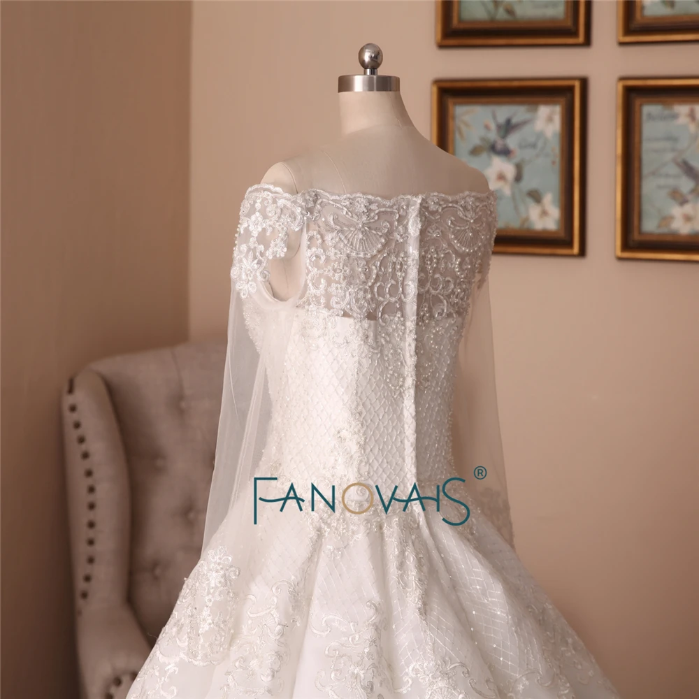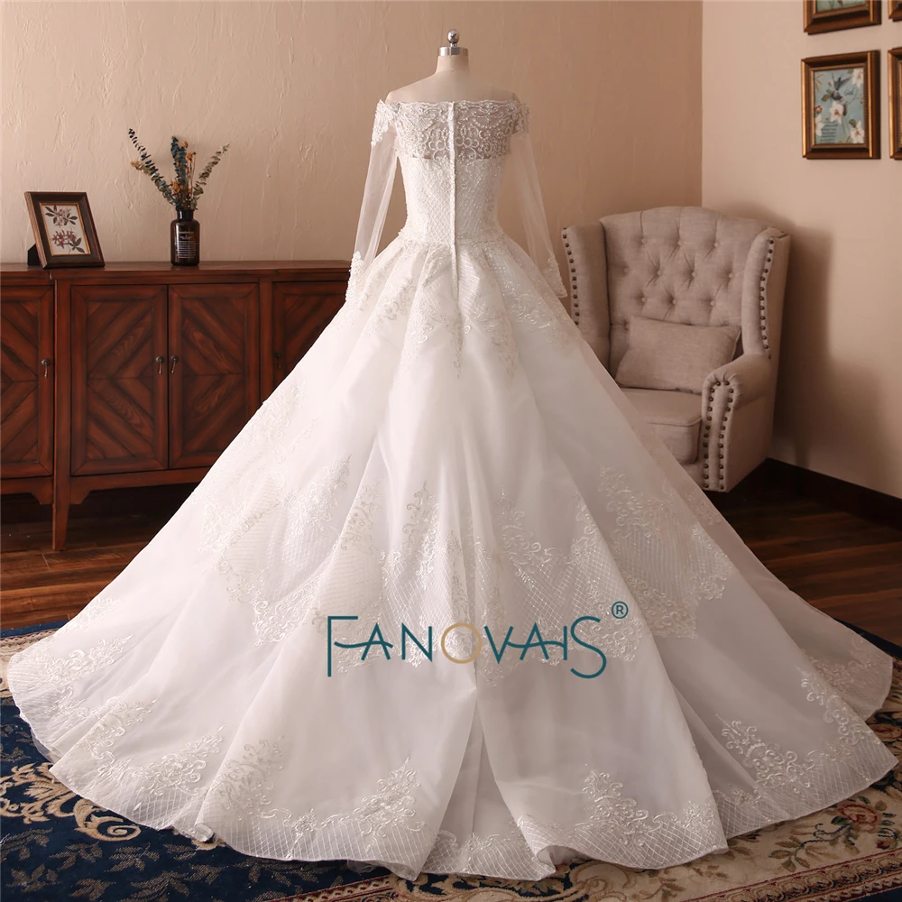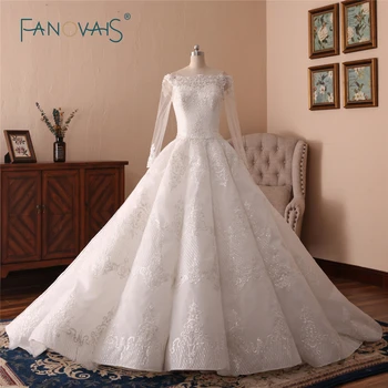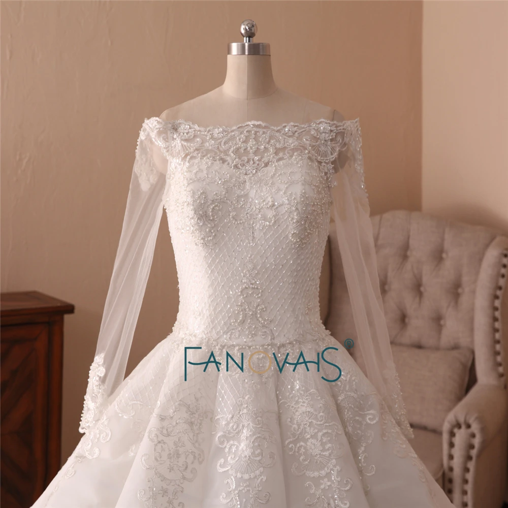 Special Offer فساتين زفاف فاخرة 2020 كم طويل قبالة الكتف الكرة ثوب الزفاف الدانتيل مطرز رداء دي ماري ثوب زفاف NW18 Discount 15% Today!