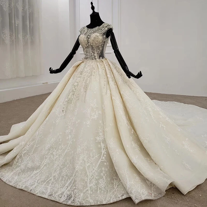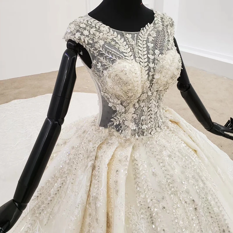 Special Offer BGW 3135ht 2020 اللؤلؤ فستان الزفاف النساء مطوي س الرقبة أكمام الديكور زهرة الفاخرة الأبيض فستان الزفاف اكسسوارات جديدة Discount 50% Today!
