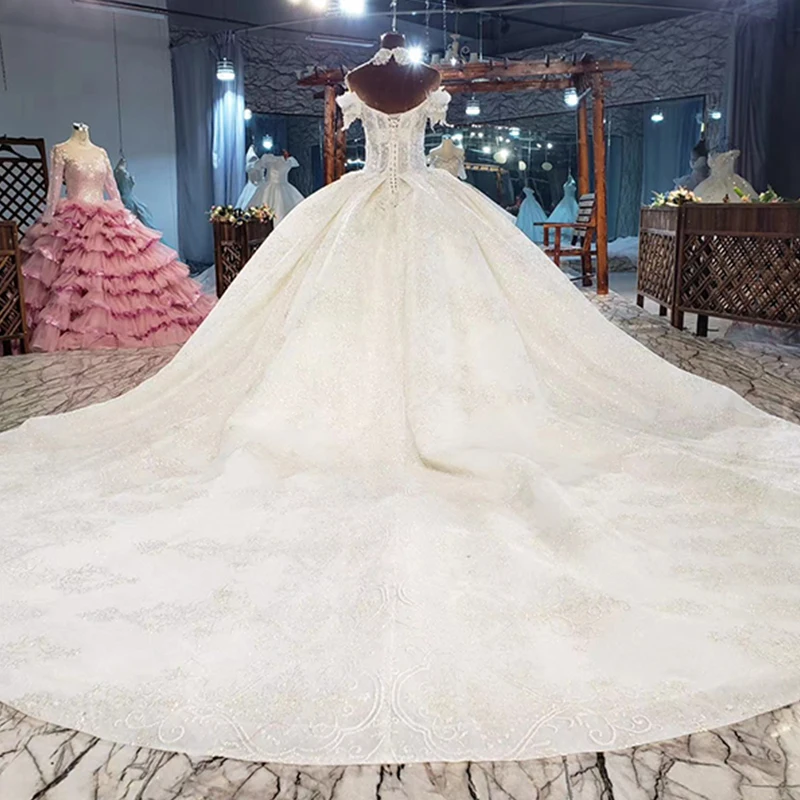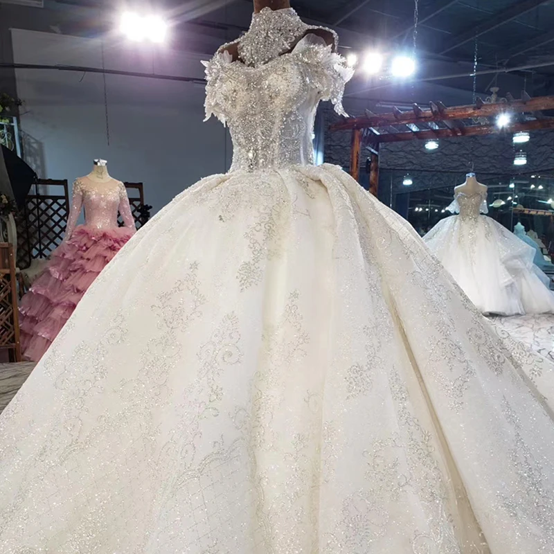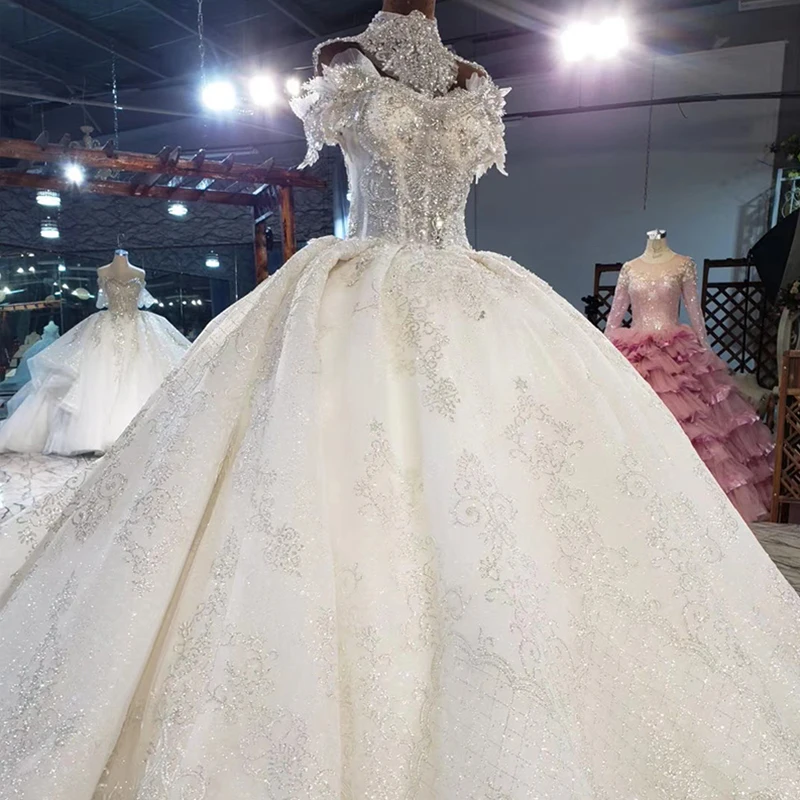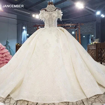Special Offer HTL1927 فاخر أنيق رقبة مستديرة كريستال مطرز بالخرز فستان الزفاف 2020 فستاين سهرة/فساتين الحفلات كم قصير خارج الكتف Discount 55% Today!