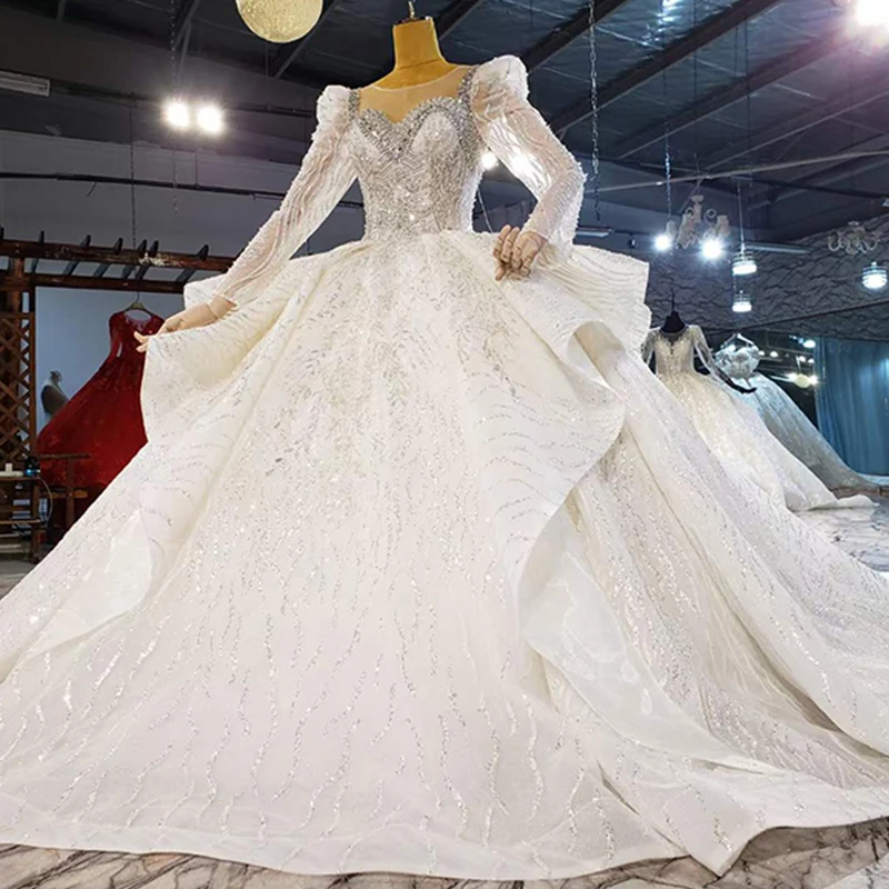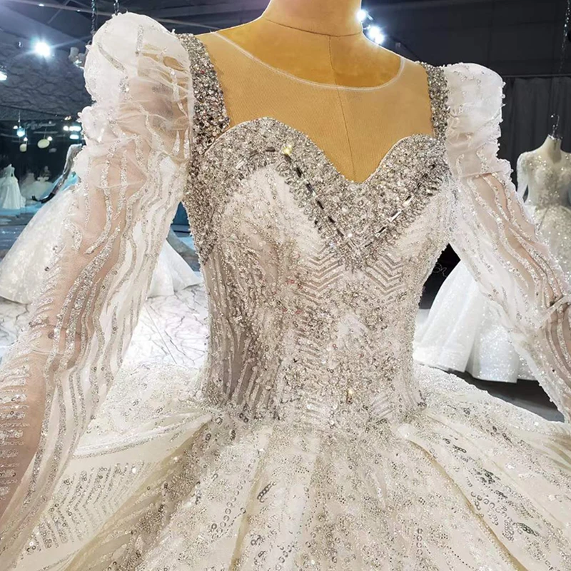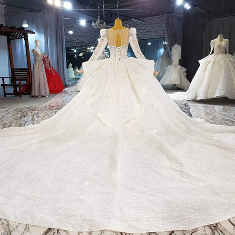 Special Offer فستان زفاف مزود بفيونكة مطرزة فاخر من الكريستال مطرز بالخرز موديل HTL2035 فستان زفاف بأكمام طويلة ورباط على شكل قلب من الخلف 2021 Discount 50% Today!