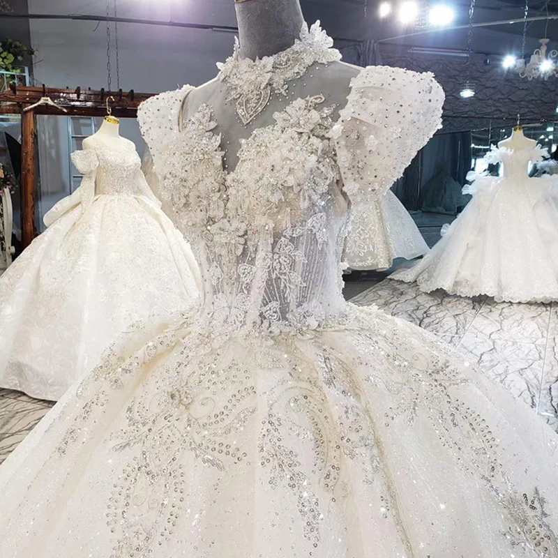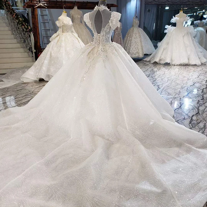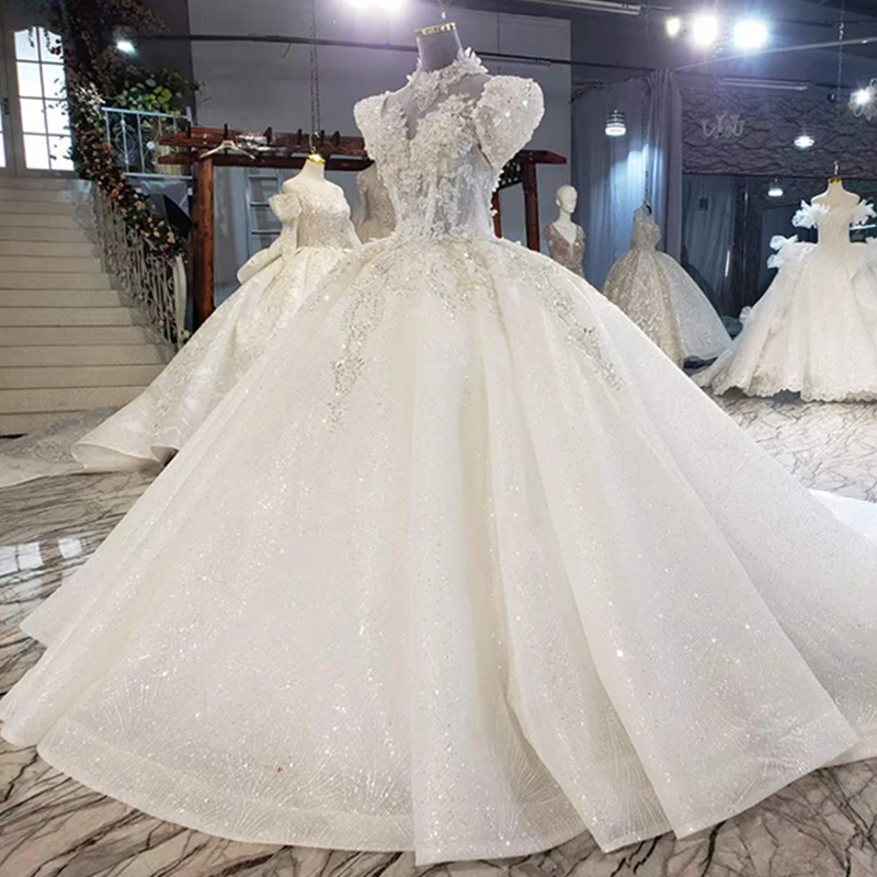 Special Offer فستان زفاف HTL2089 قصير الأكمام مثير بفتحة رقبة على شكل حرف V مطرز بكريستال فاخر مطرز بالترتر 2021 بأربطة من الخلف Discount 50% Today!