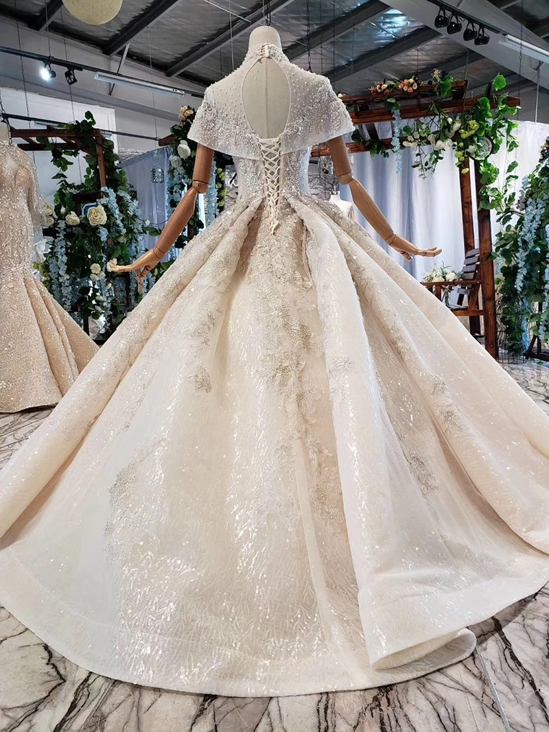 Special Offer HTL733 بوهو فستان الزفاف خمر عالية الرقبة الرأس كم الكريستال الكرة ثوب الزفاف اللباس ثوب زفاف مع عباءة Vestido دي Noiva Discount 50% Today!