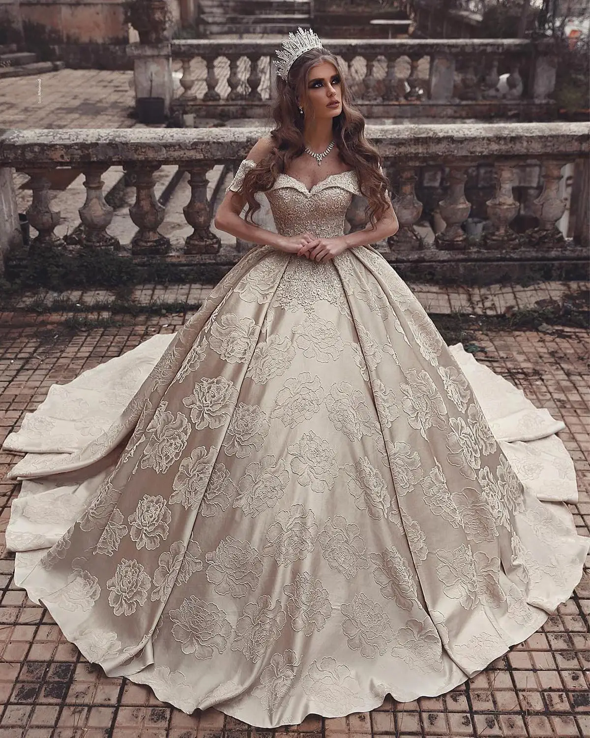 Special Offer مثير قبالة الكتف الكرة ثوب الزفاف أنيقة الحبيب عارية الذراعين الزفاف العروس فساتين طويلة فاخرة مطرز رداء دي ماري Discount 0% Today!