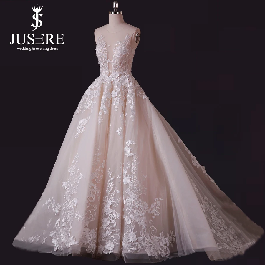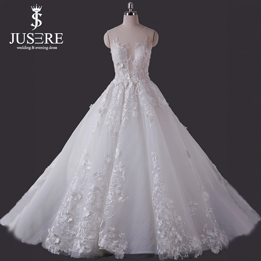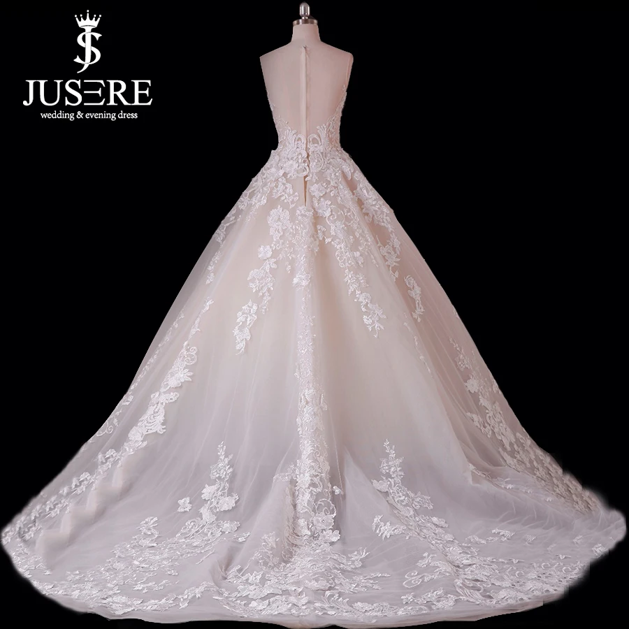 Special Offer فستان زفاف بتصميم عربي فاخر بفتحة رقبة على شكل V بدون أكمام مزين بالدانتيل على شكل زهور ذيل كبير وسحاب حتى فستان زفاف 2018 Discount 0% Today!