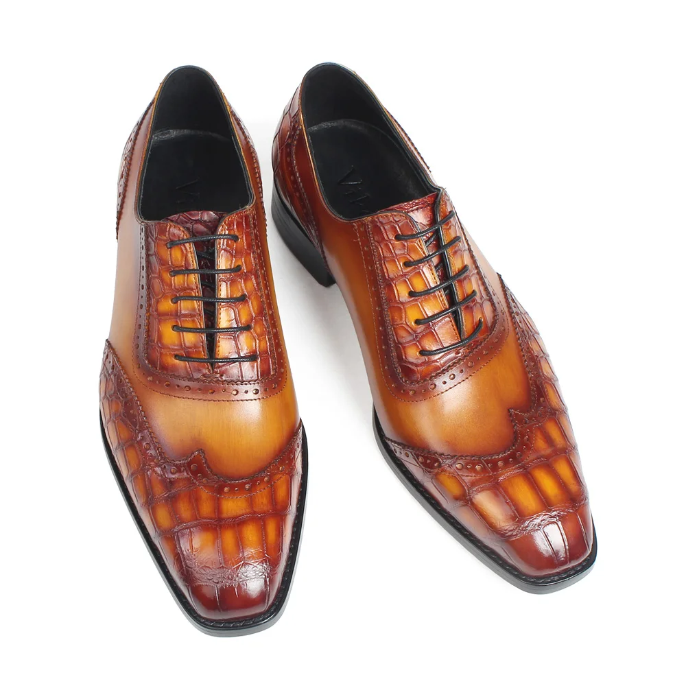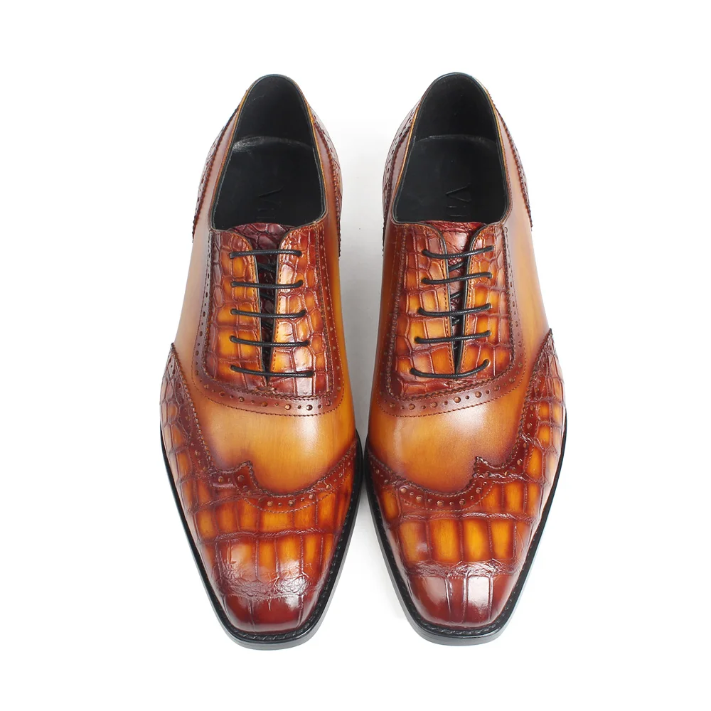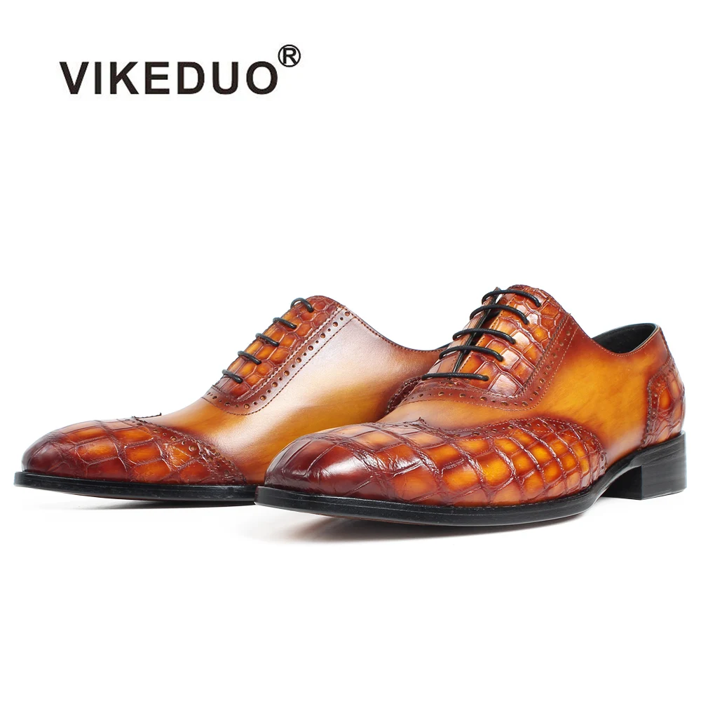 Special Offer VIKEDUO باتينا براون اليدوية التمساح أحذية من الجلد الرجال البروغ الزفاف مكتب العلامة التجارية الفاخرة رجل الأحذية ساحة تو أكسفورد Discount 39% Today!
