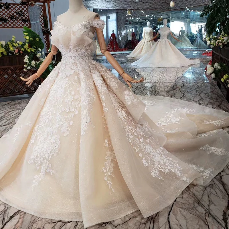 Special Offer BGW HT43030 فساتين زفاف خاصة مع قطار طويل قبالة الكتف على شكل حرف V الدانتيل يصل الظهر ثوب زفاف فاخر 2020 تصميم عصري Discount 56% Today!