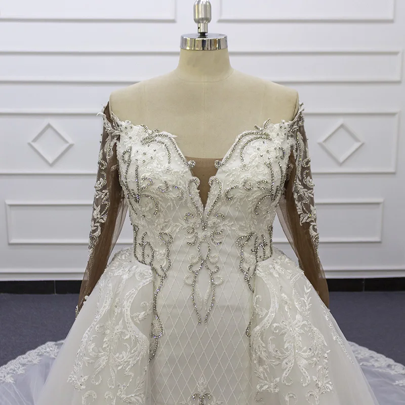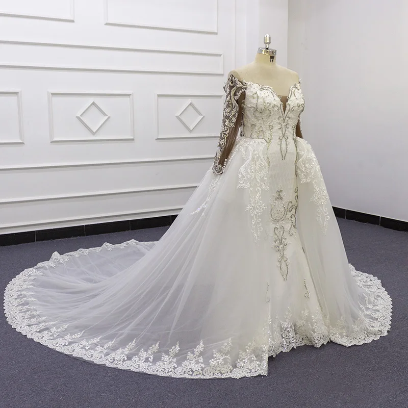 Special Offer Eslieb تصميم Vestido De Noiva الأميرة طويلة الأكمام الدانتيل يزين الكريستال الفاخرة انفصال تنورة 2020 فستان الزفاف SJ423 Discount 0% Today!