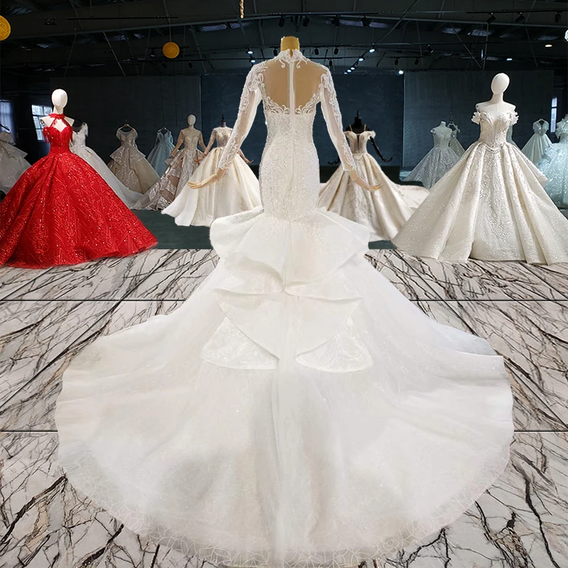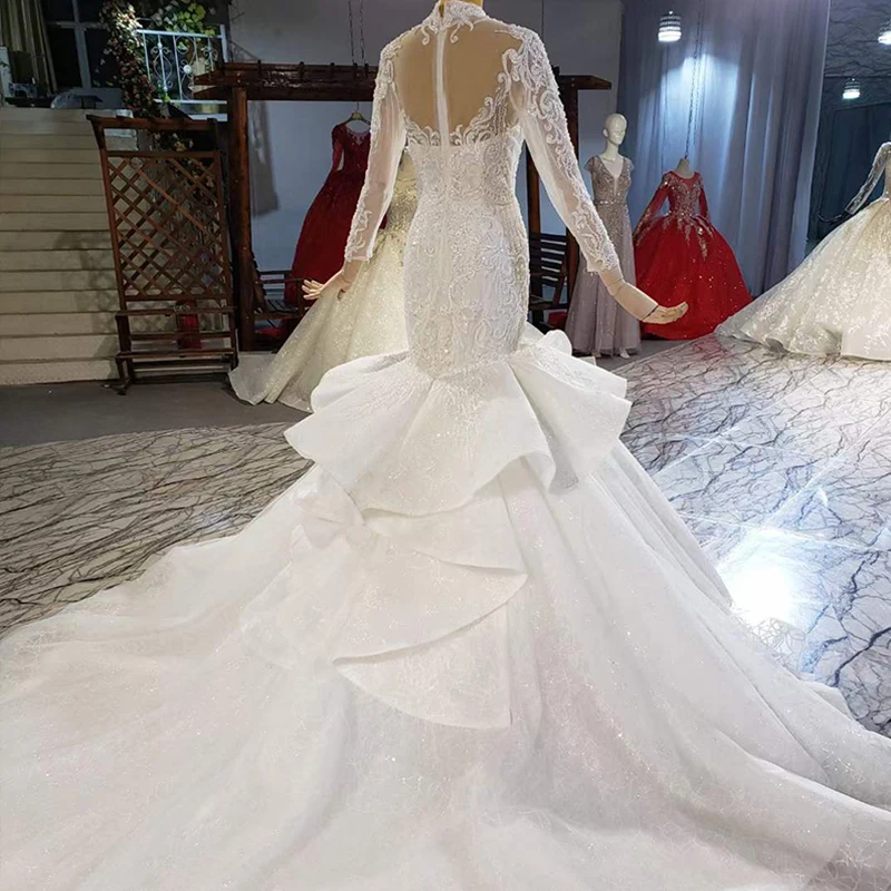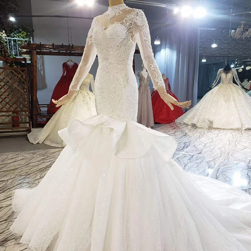 Special Offer فستان زفاف بحورية البحر مزين بالترتر من HTL2007 فستان زفاف 2021 بأكمام طويلة مثير وياقة على شكل V عميقة مزين بالكريستال Discount 55% Today!