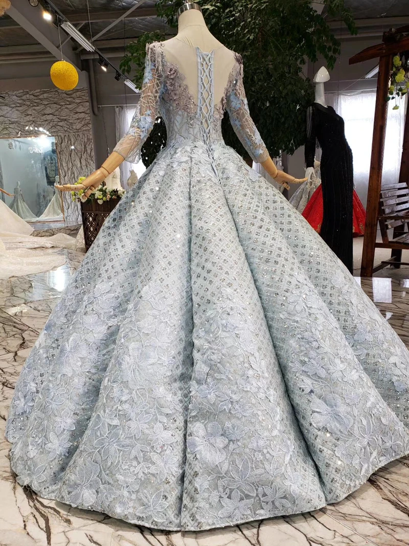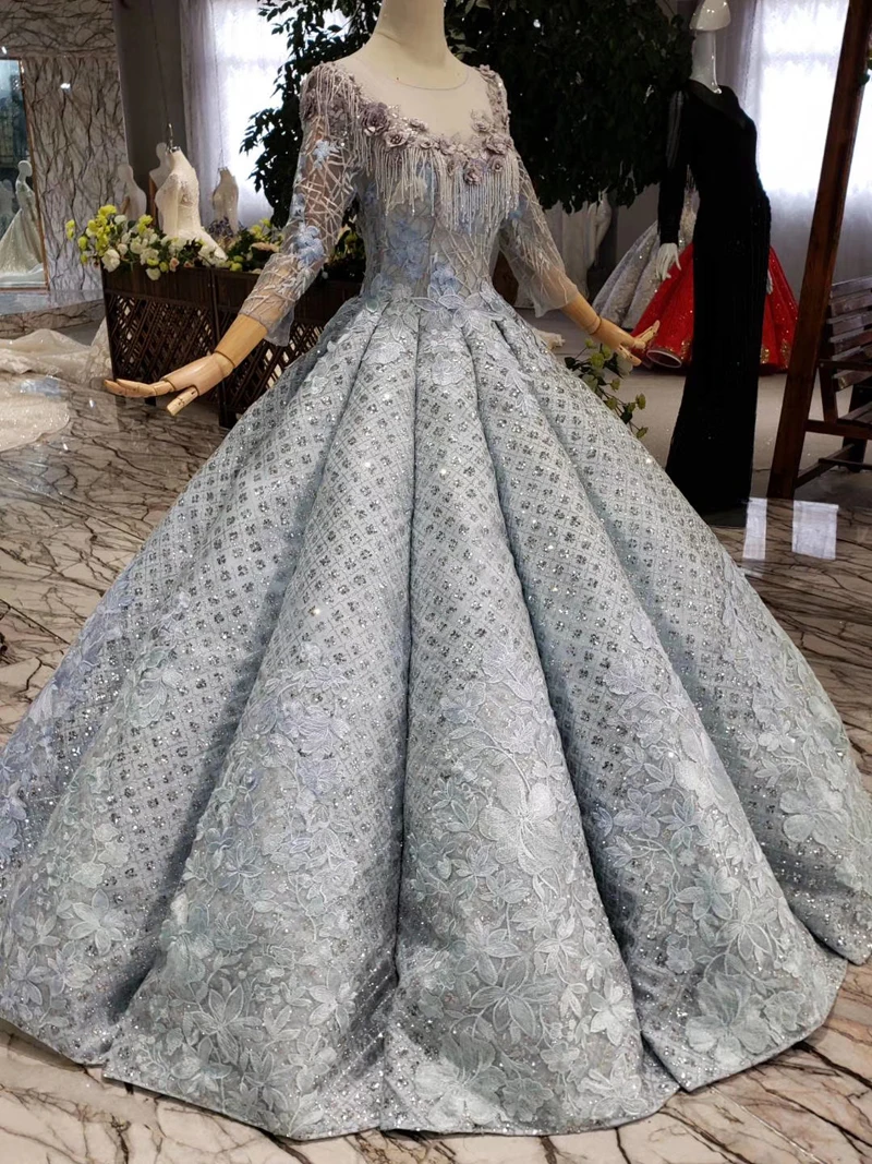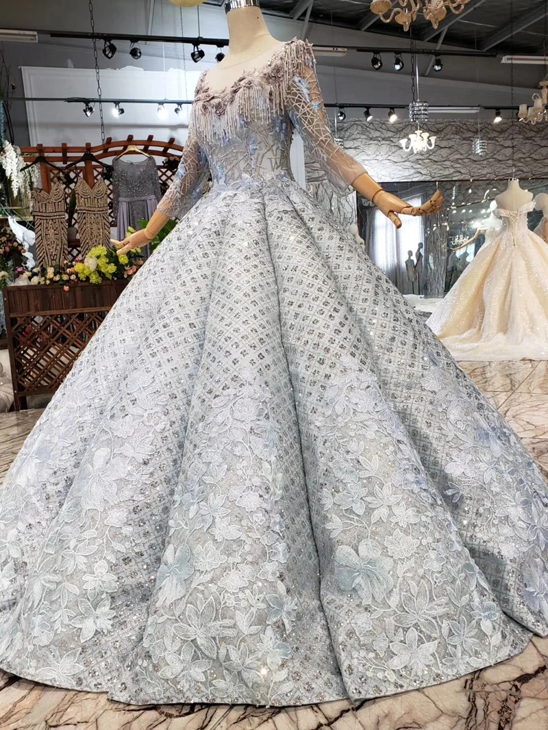 Special Offer HTL207 فساتين سهرة فاخرة منتفخة بطيات 2020 رقبة دائرية وأكمام طويلة بأربطة خلفية شرابة فساتين لحضور الحفلات الموسيقية طول الأرض Discount 50% Today!