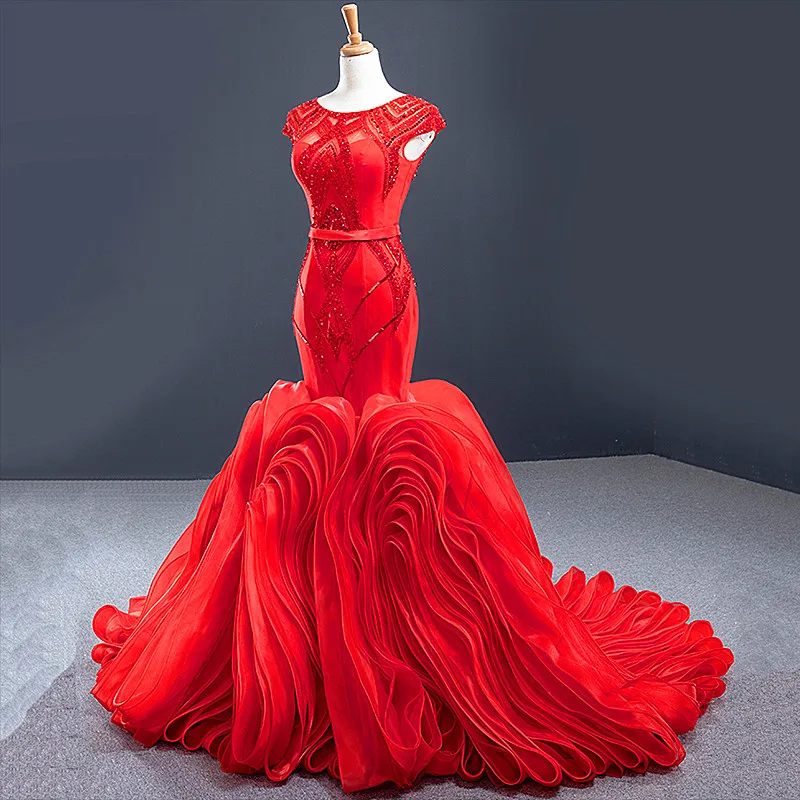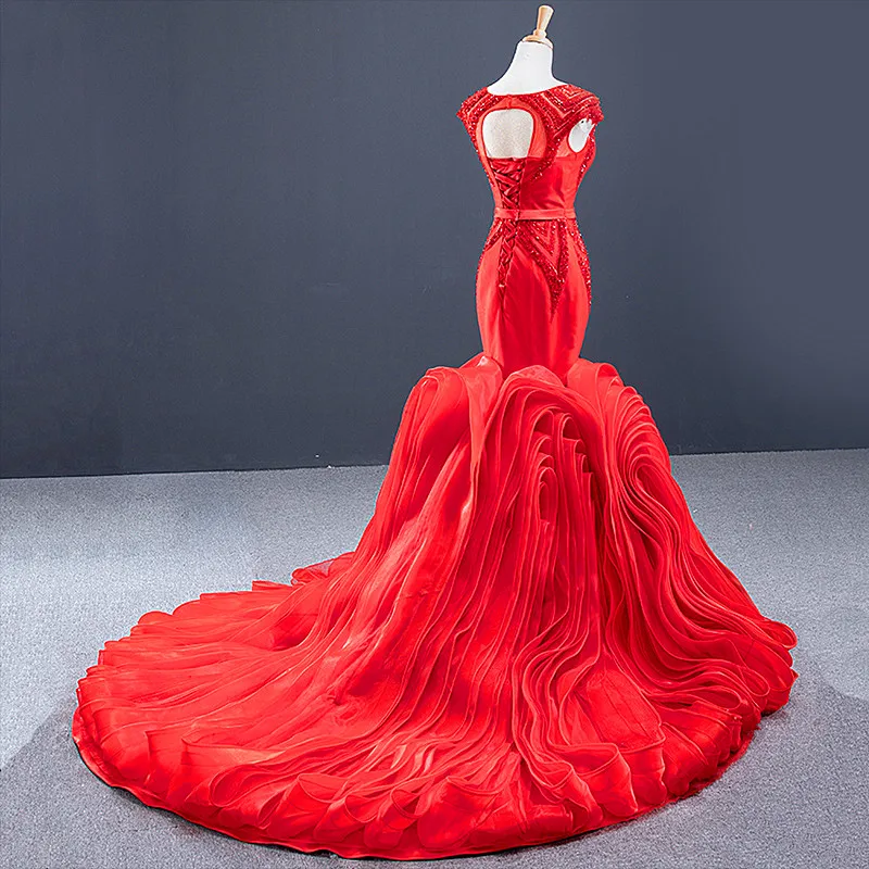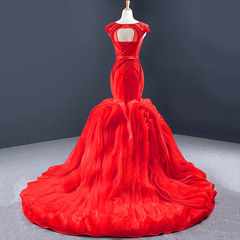 Special Offer فساتين سهرة فاخرة حورية البحر رقبة على شكل حرف O وأكمام قصيرة مطرزة بكريستال تول فستان طويل للحفلات رداء سهرة فستان رسمي مثير فساتين حفلات Discount 20% Today!