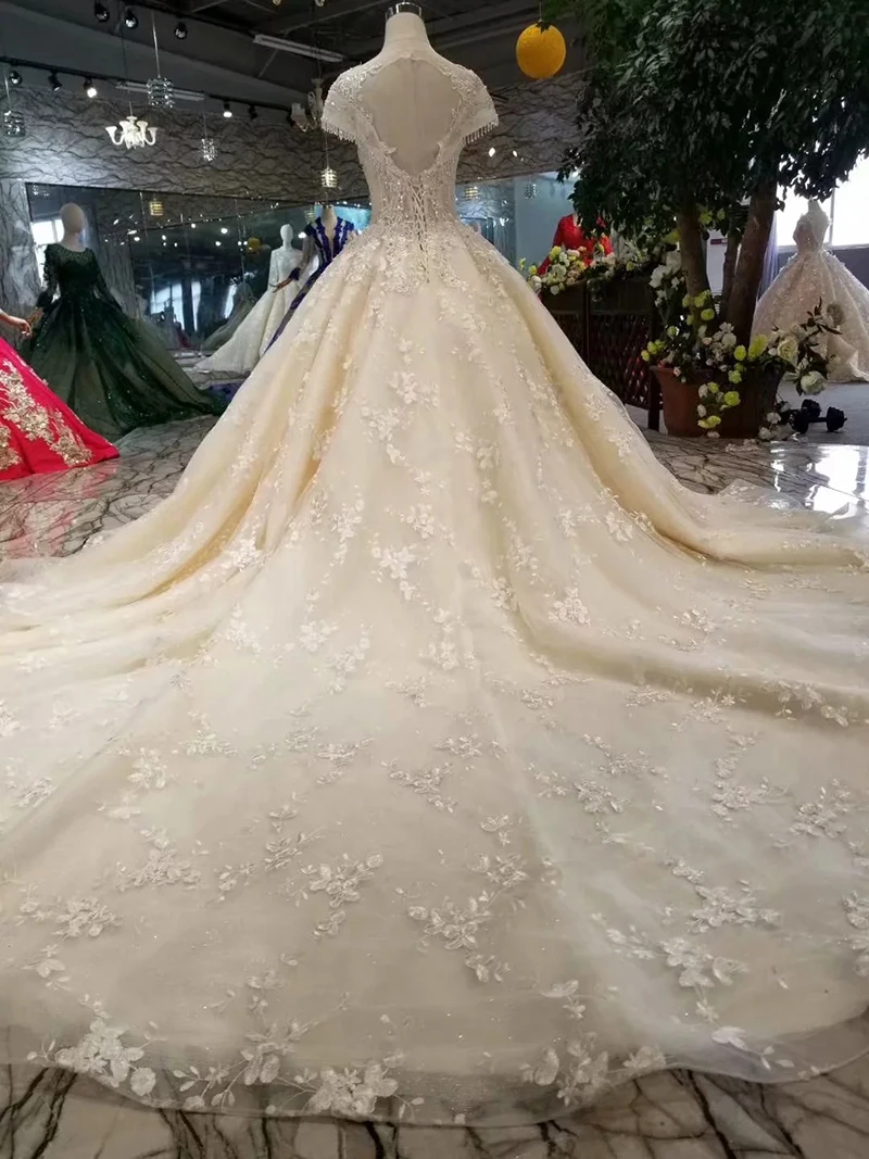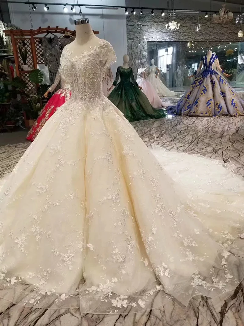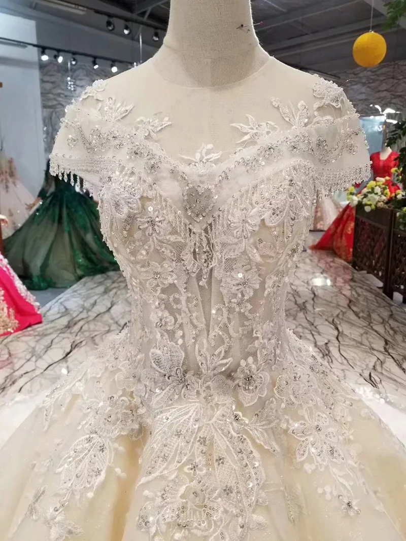 Special Offer 100% صور حقيقية فساتين زفاف فاخرة ثوب حفلة تول الشمبانيا الدانتيل كريستال مطرز قطار كبير زي العرائس 2020 جديد LO06 Discount 23% Today!