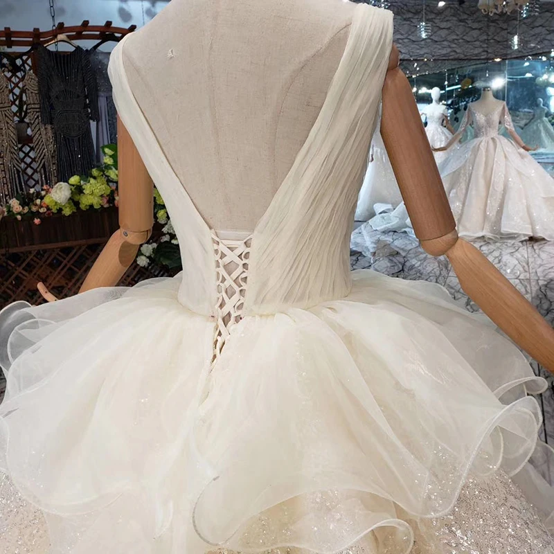 Special Offer BGW HT42823 مفتوح الظهر بلا أكمام فستان الزفاف مع طرحة زفاف شرابة بلا ظهر على شكل حرف V فستان الزفاف ثوب زفاف مع بيبلوم Discount 56% Today!