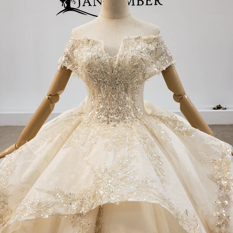 Special Offer HTL1638 كريمة ومزينة بسخاء مع الترتر اللؤلؤ والخرز فستان الزفاف 2020 فستاين سهرة/فساتين الحفلات Discount 55% Today!