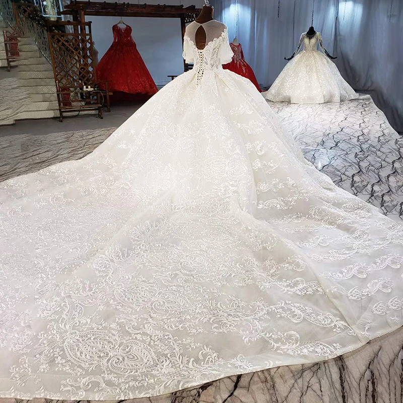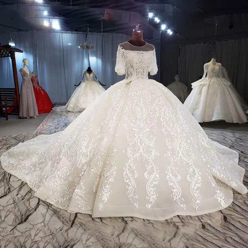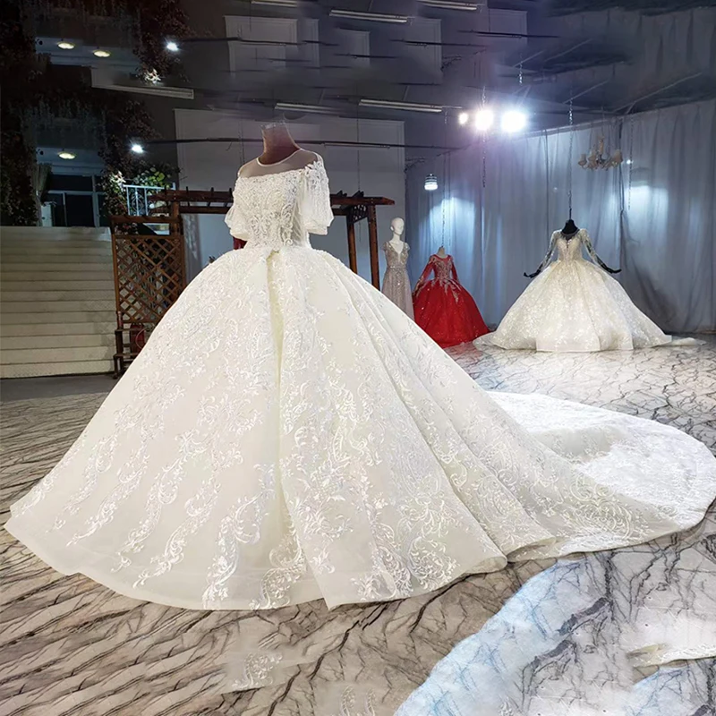 Special Offer HTL2036 فستان زفاف 2021 للمرأة الفاخرة قارب الرقبة كريستال الخرز الترتر فستاين سهرة/فساتين الحفلات نصف نفخة الأكمام Discount 55% Today!