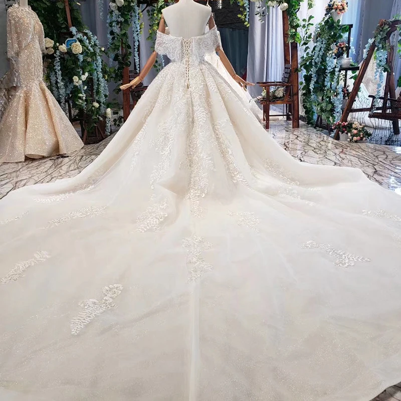 Special Offer HTL698 الفاخرة الزفاف فساتين مع طرحة زفاف مطرز قارب الرقبة قبالة الكتف اليدوى الدانتيل الزفاف أثواب 2019 Encontrar وخا Discount 50% Today!
