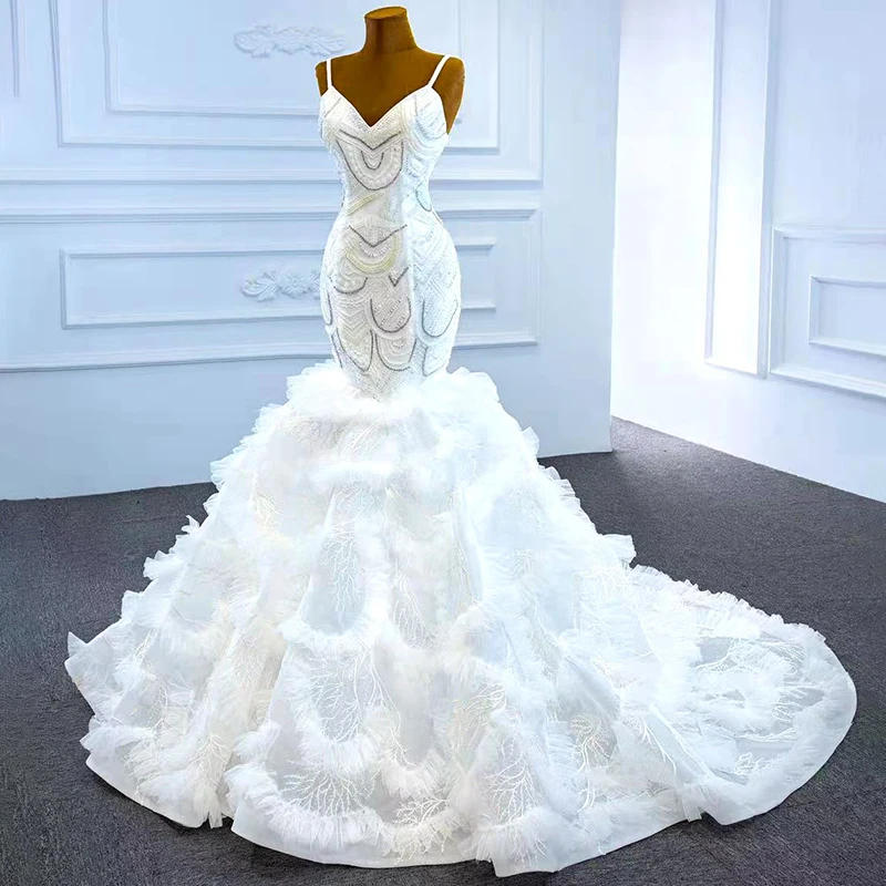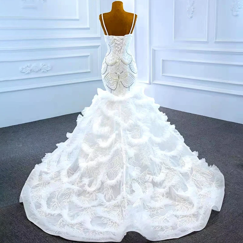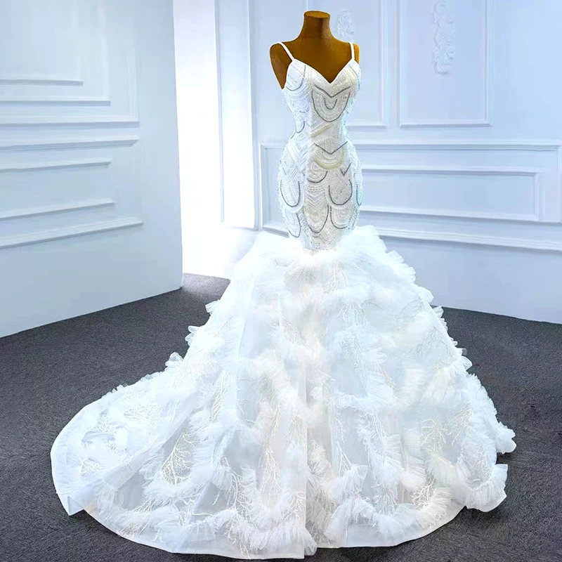 Special Offer J67123 جانسيمبر كريستال حورية البحر فستان الزفاف 2021 السباغيتي الأشرطة بلا أكمام حجم كبير زي العرائس Discount 56% Today!