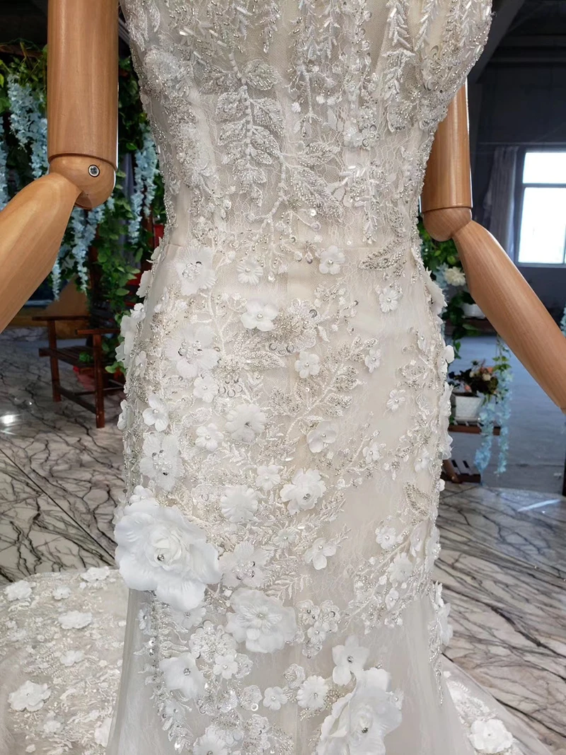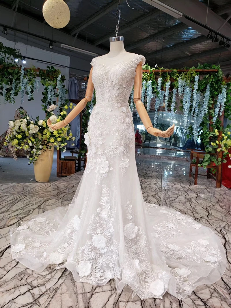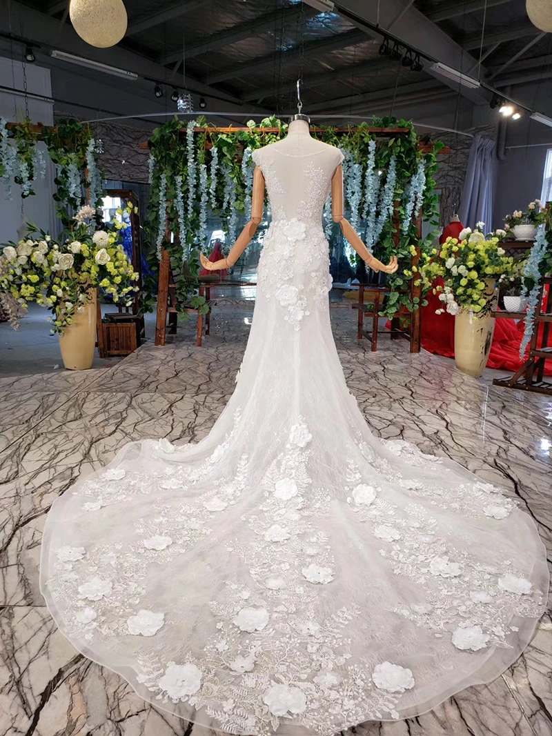 Special Offer LSS534 بوهو فستان الزفاف حورية البحر س الرقبة يزين ثلاثية الأبعاد الزهور قبعة الأكمام الدانتيل فساتين الزفاف للعروس Vestido دي Noiva Princesa Discount 50% Today!