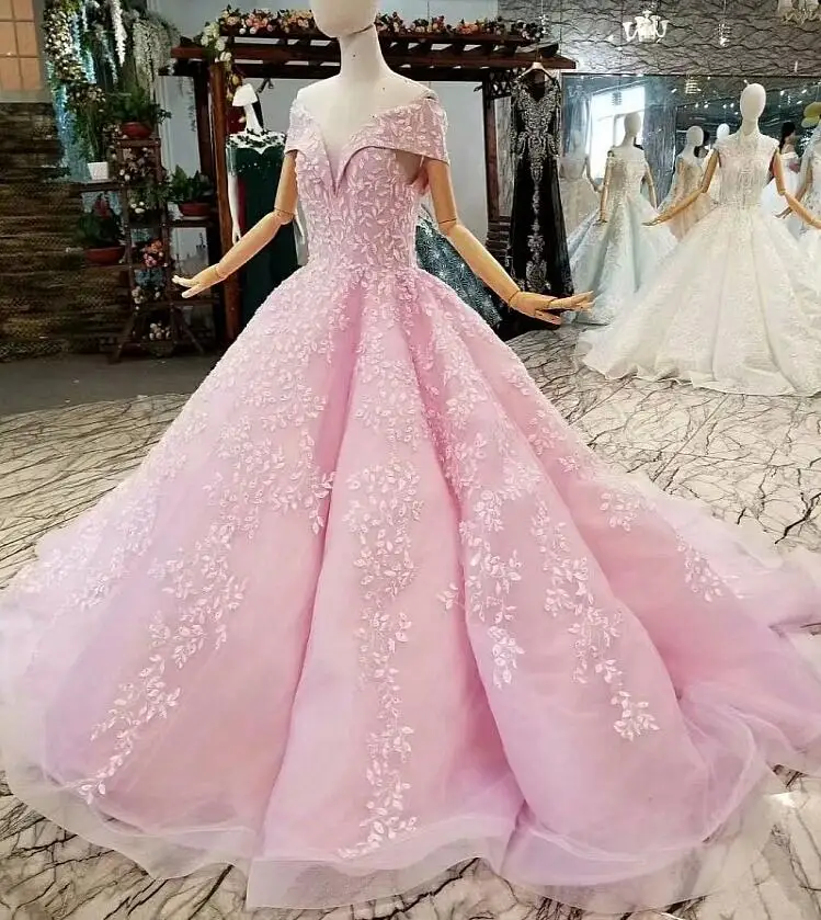 Special Offer الوردي الفاخرة كبيرة تنورة اليدوية الرباط الزفاف فستان زفاف Discount 0% Today!