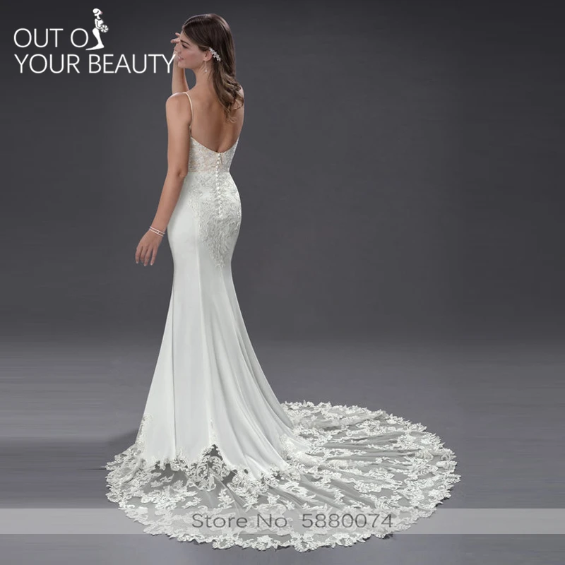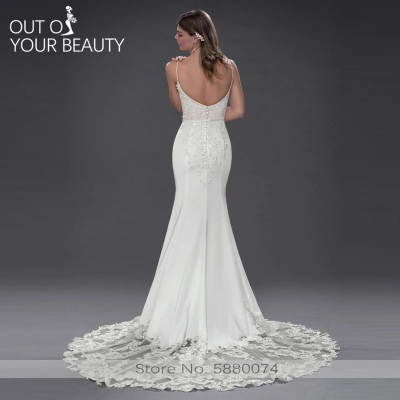 Special Offer فستان الزفاف الأبيض حورية البحر 100 سنتيمتر الذيل الخامس الرقبة الرافعة مثير عارية الذراعين أكمام الدانتيل حساسة أنيقة فستان زفاف الزفاف 2020 Discount 0% Today!