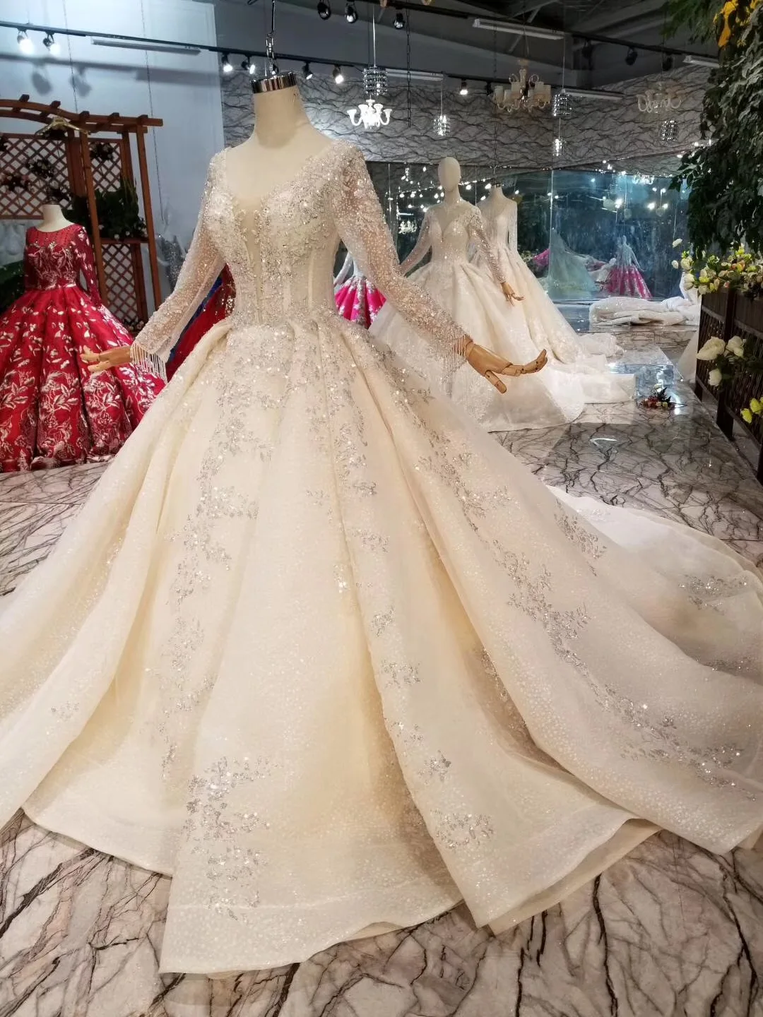 Special Offer مخصص فاخر الكرة ثوب منفوش كريستال مطرز الماس فساتين الزفاف الرسمية 2019 الراقية زي العرائس Discount 20% Today!