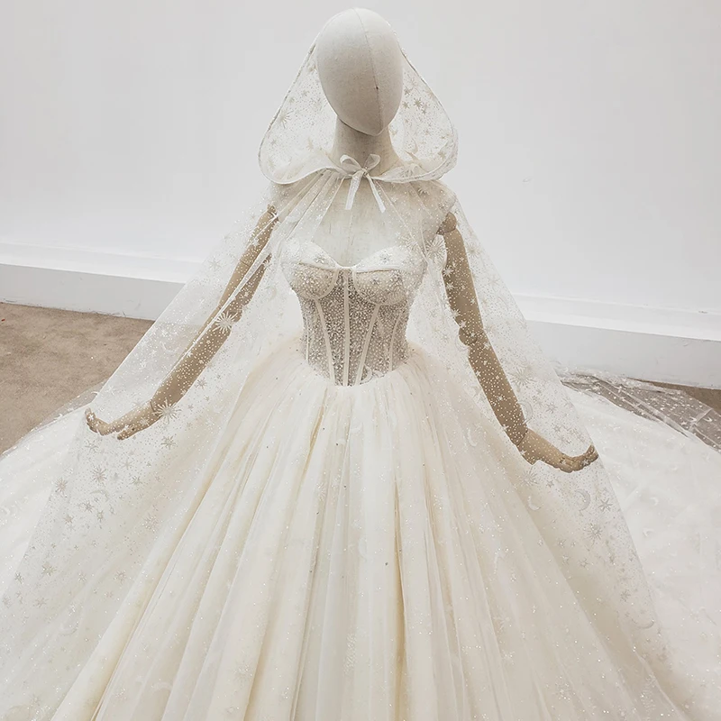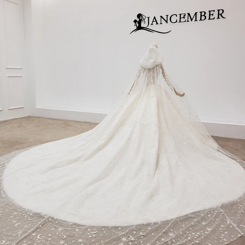 Special Offer HTL1434 فستان الزفاف مع عباءة الحجاب فستان عروس 2020 تول بريق تحت تنورة ثوب زفاف حبة حجر الراين الأعلى Discount 55% Today!