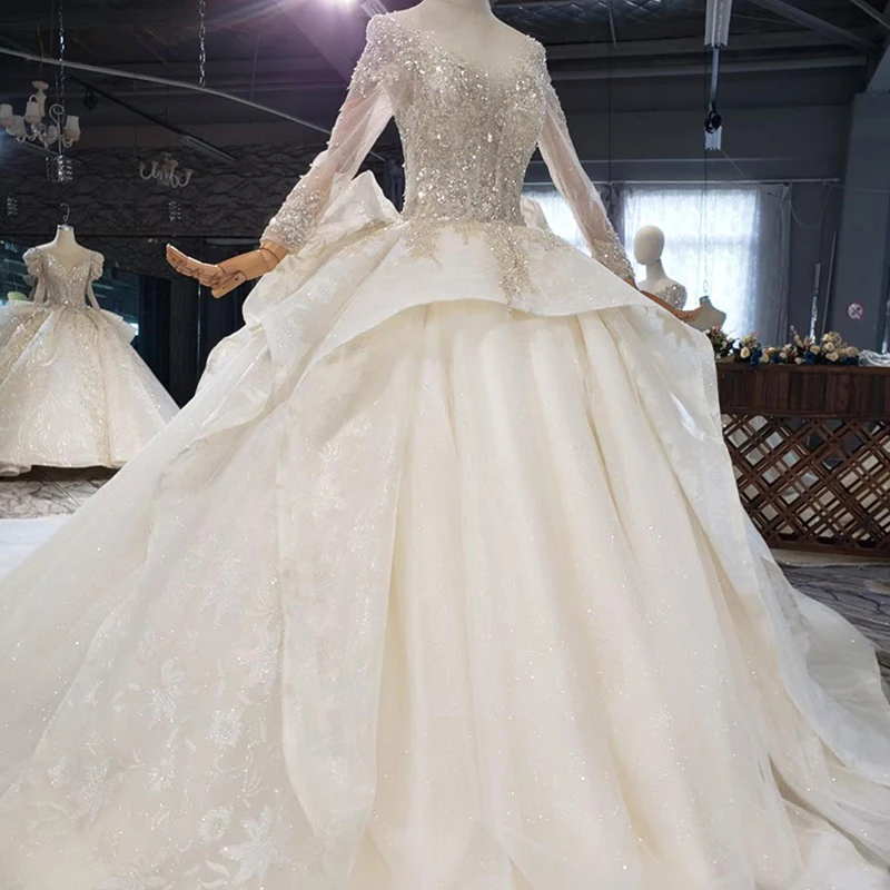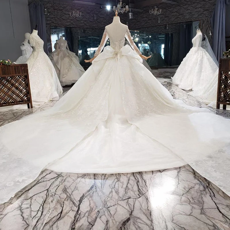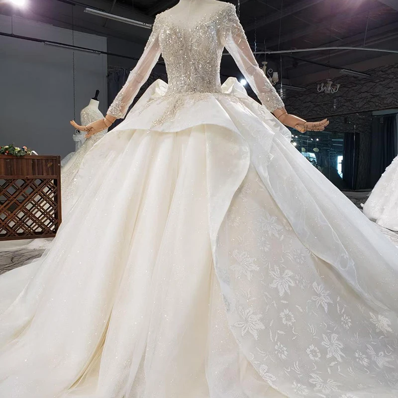 Special Offer HTL1874 فستان زفاف فاخر مطرز بالخرز 2020 كم طويل مزين فستاين سهرة/فساتين الحفلات كريستال رقبة دائرية Discount 55% Today!
