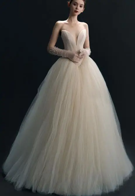 Special Offer فساتين زفاف فاخرة من التل فستان عروس ملكي بسيط لحفلات الزفاف فساتين زفاف مصلى عتيقة من Vestidos De Noiva مقاس كبير Discount 0% Today!
