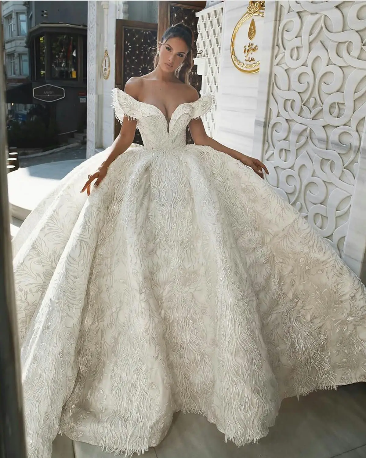 Special Offer فستان زفاف رائع عاجي مكشوف الأكتاف مزين بالخرز المملكة العربية السعودية دبي زي العرائس مقاس كبير Discount 10% Today!
