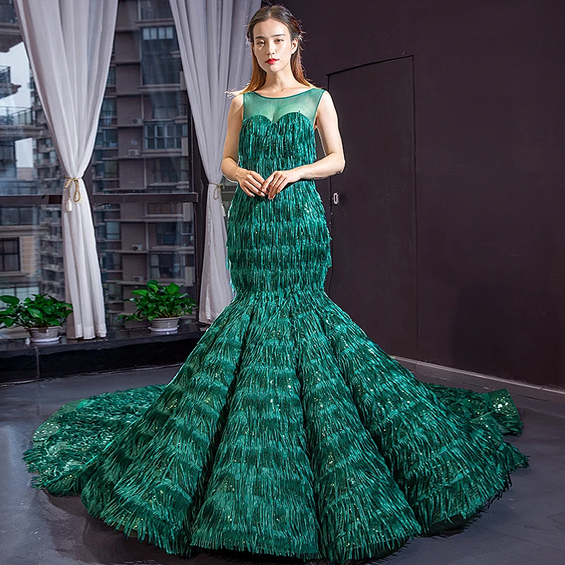 Special Offer فستان سهرة أخضر للنساء 2020 مثير فاخر من الكريستال العربي دبي الراقية مخصص حورية البحر فستان رسمي للحفلات Sukienka Discount 20% Today!