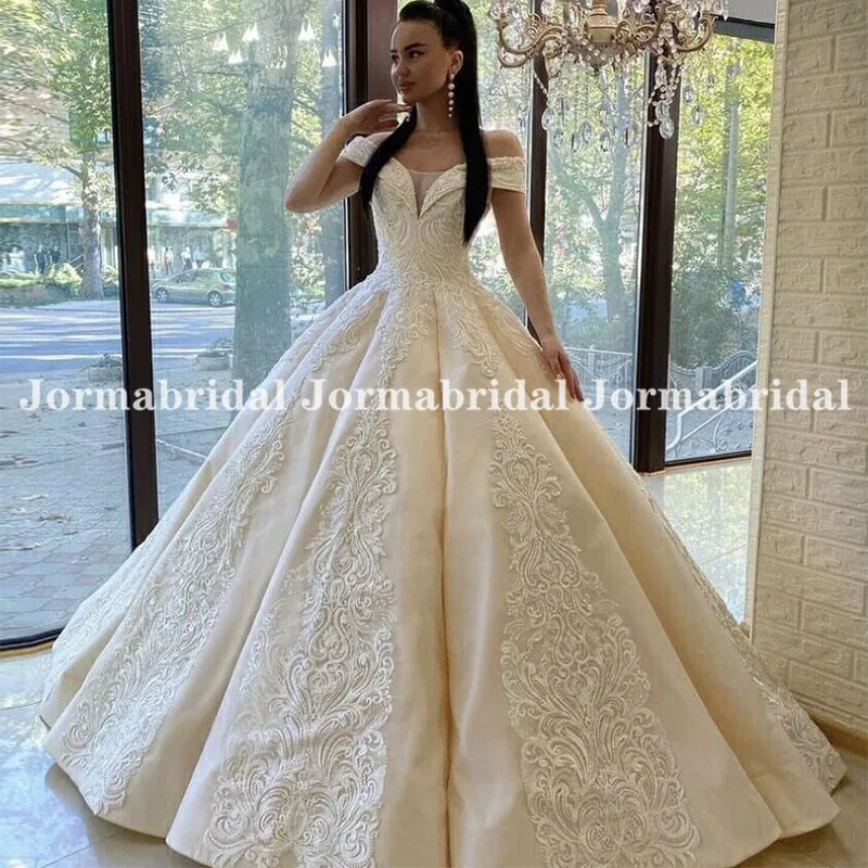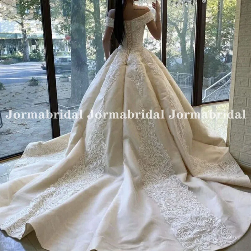 Special Offer فساتين زفاف فاخرة مزينة 2021 بدون الكتف فستان أبيض رسمي طويل للعرائس بالإضافة إلى حجم الدانتيل حتى الظهر زي العرائس Discount 20% Today!